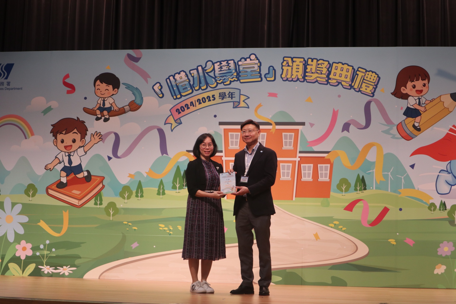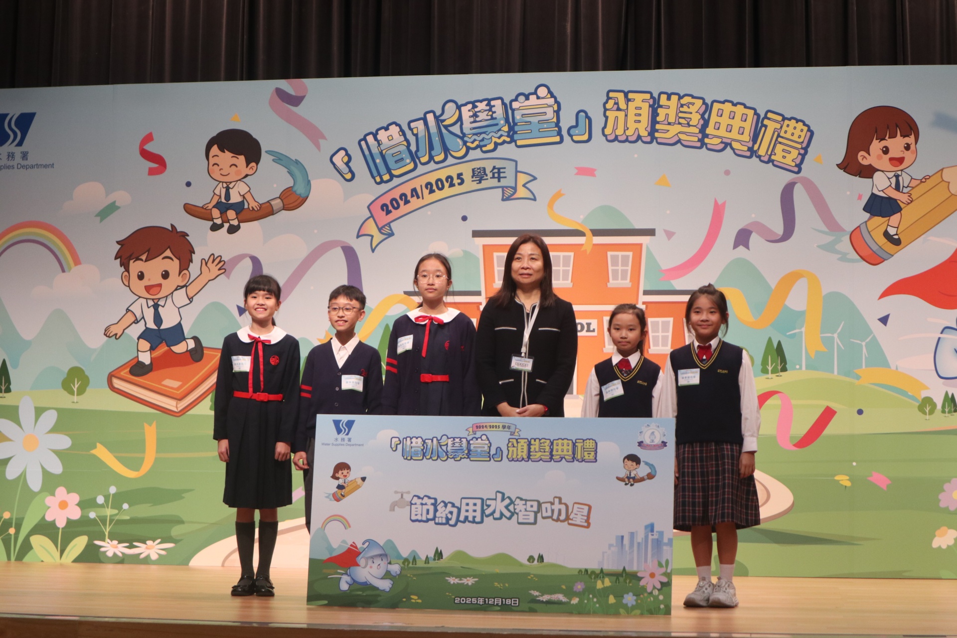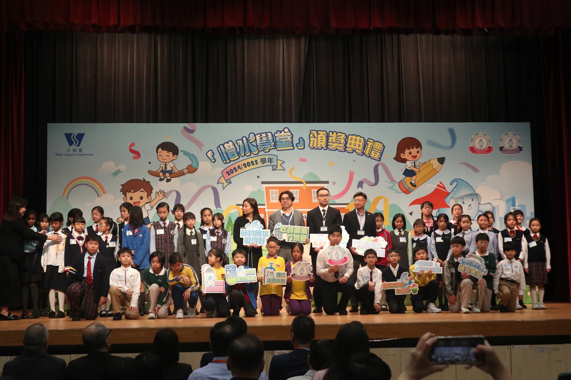 配合閲讀主題「愛自然 愛生活」,本校參加了水務署舉辦的「惜水學堂」小學教育計劃,活動已於早前完滿結束,全校學生積極參與,共參與了數十項活動,表現出色。經水務署評選後,全校學生獲得金獎,表現出眾的三位學生更獲得了「節約用水智叻星」獎項。十二月十八日,本校代表出席了「惜水學堂」的頒獎典禮,我們一同分享喜悅吧!
