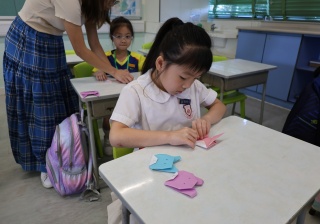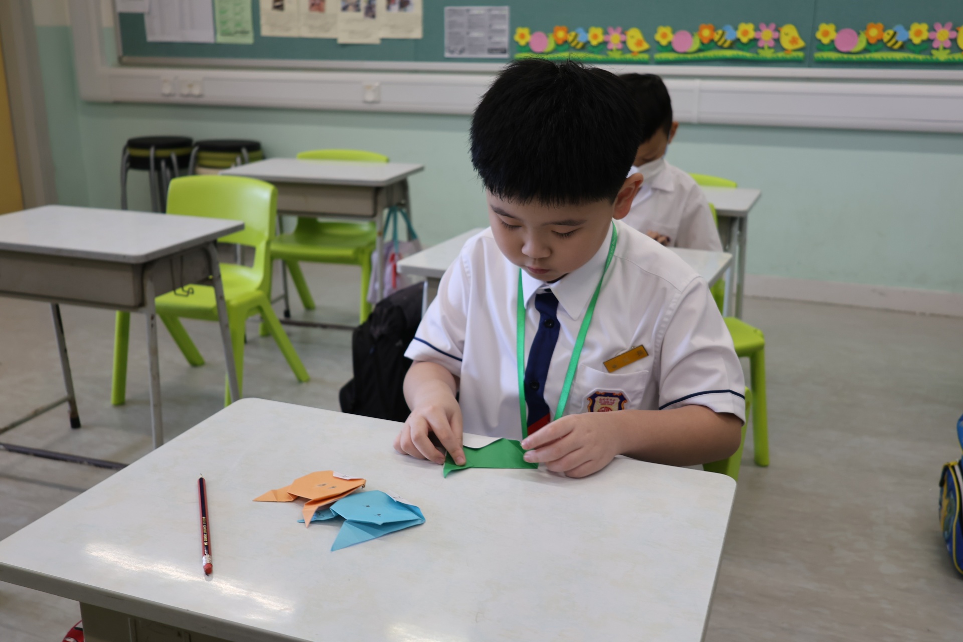 學習基本摺紙技巧,摺出動物或和不同節日有關的物品,讓學生訓練小手肌,並發揮創意。