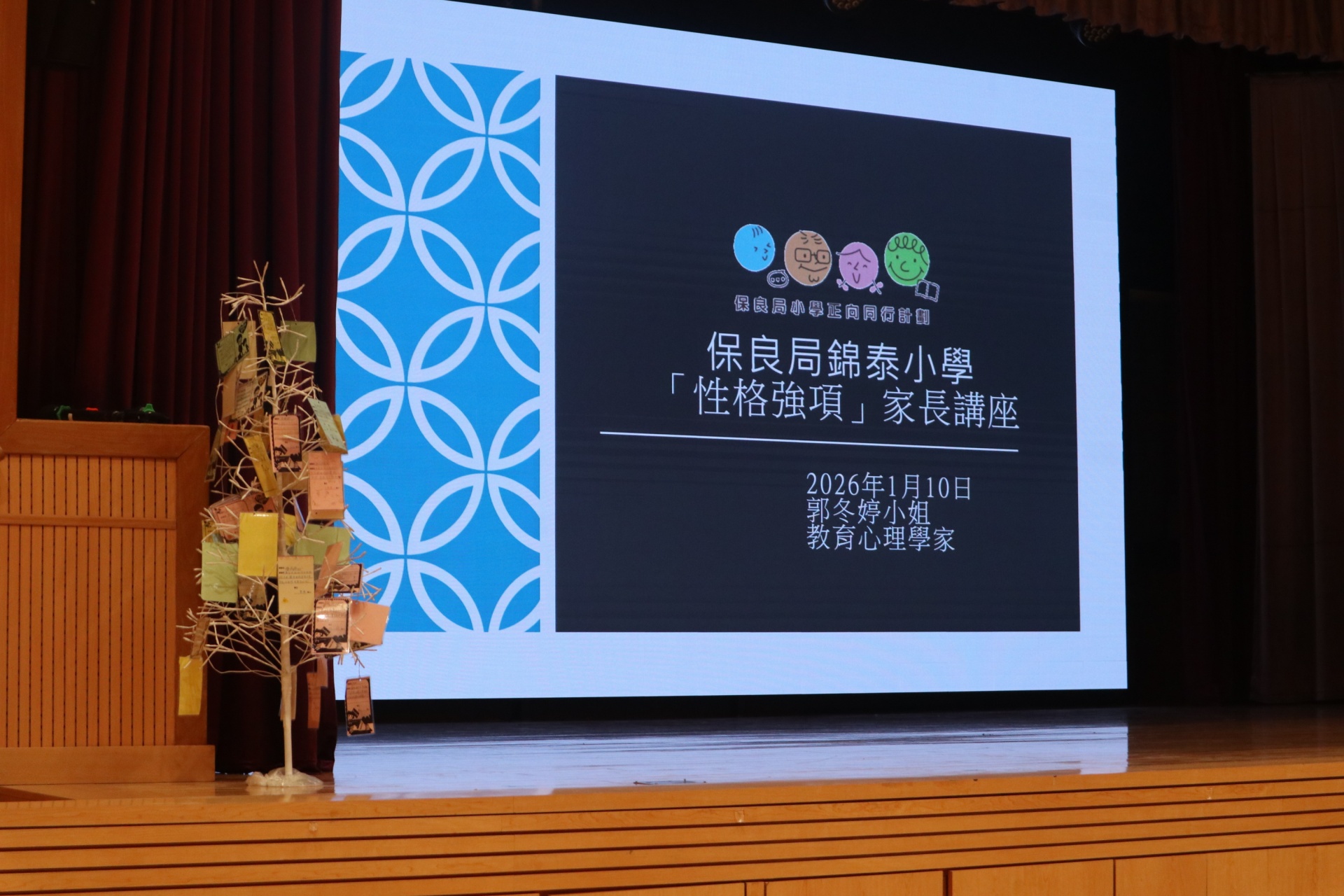 本校訓輔組於2026年1月10日(星期六)家長日當天舉行了「家長教育─性格強項」家長講座。當天講座邀請了保良局教育心理學家郭姑娘擔任主講嘉賓,主要透過遊戲、小測驗、互動活動等,讓家長認識自己的性格強項,學習在生活中更有效應用性格強項,並學習應用於與子女的溝通和教導。當天家長們都踴躍參與及分享,彼此交流和學習,有效促進家長之間的互動和成長。
