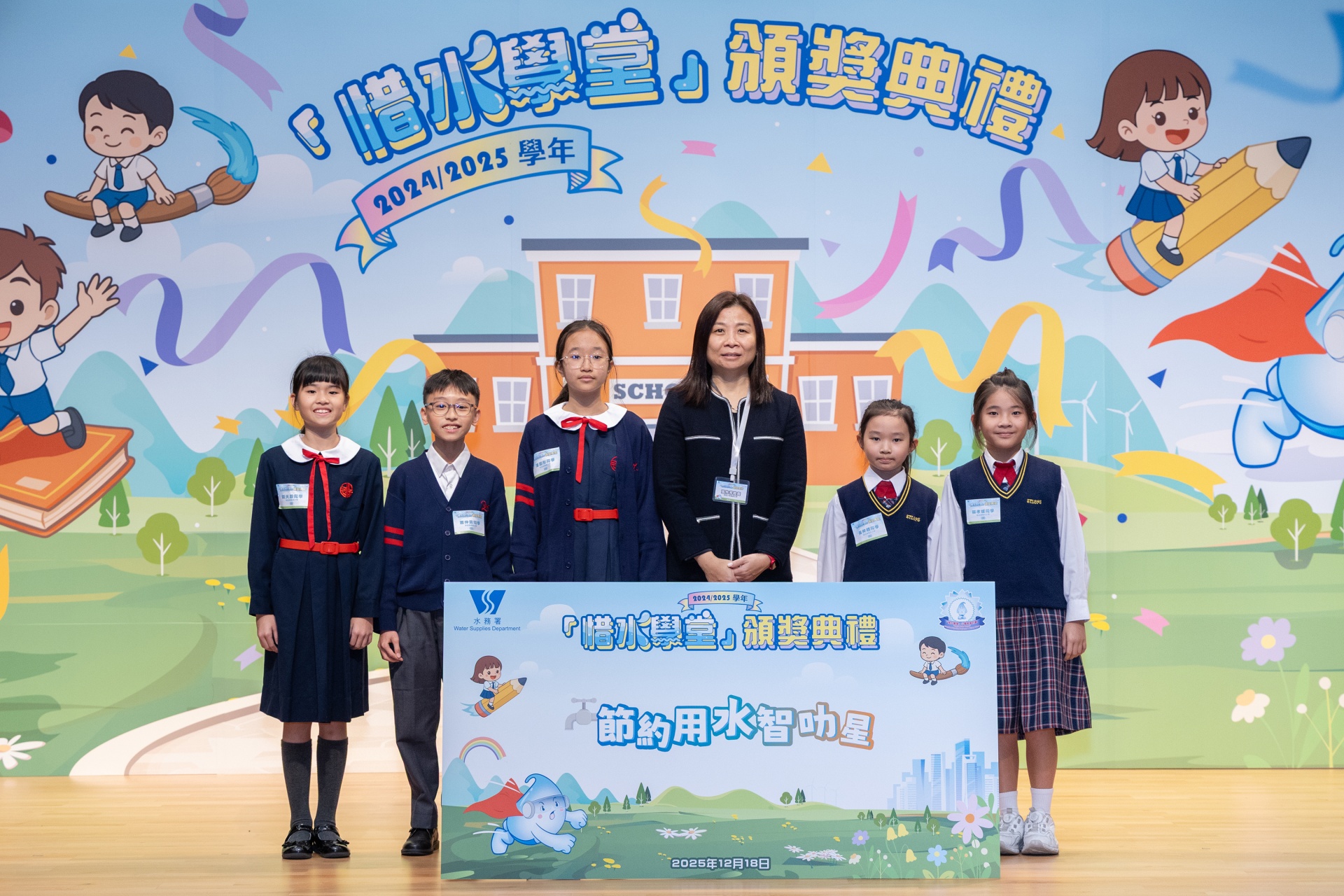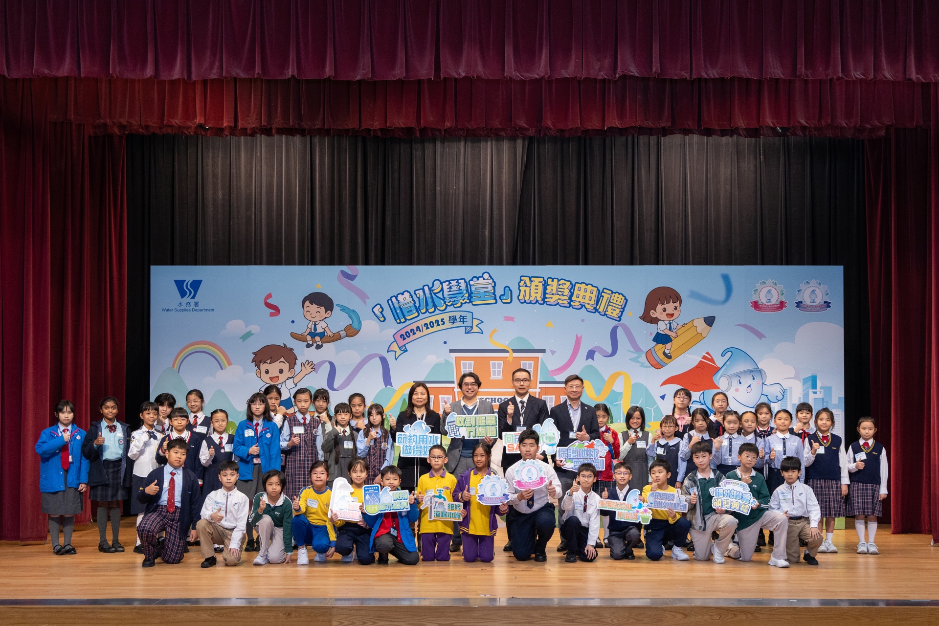 配合閲讀主題「愛自然 愛生活」,本校參加了水務署舉辦的「惜水學堂」小學教育計劃,活動已於早前完滿結束,全校學生積極參與,共參與了數十項活動,表現出色。經水務署評選後,全校學生獲得金獎,表現出眾的三位學生更獲得了「節約用水智叻星」獎項。十二月十八日,本校代表出席了「惜水學堂」的頒獎典禮,我們一同分享喜悅吧!