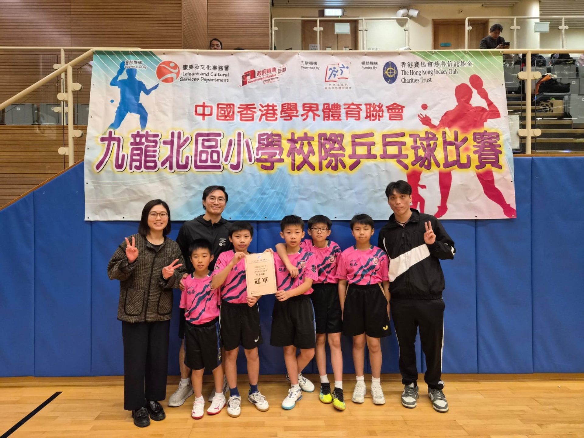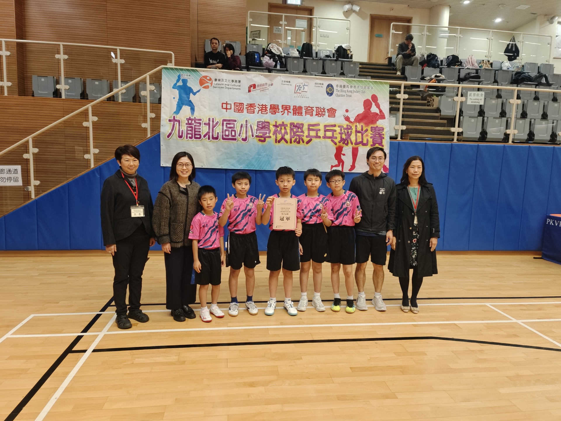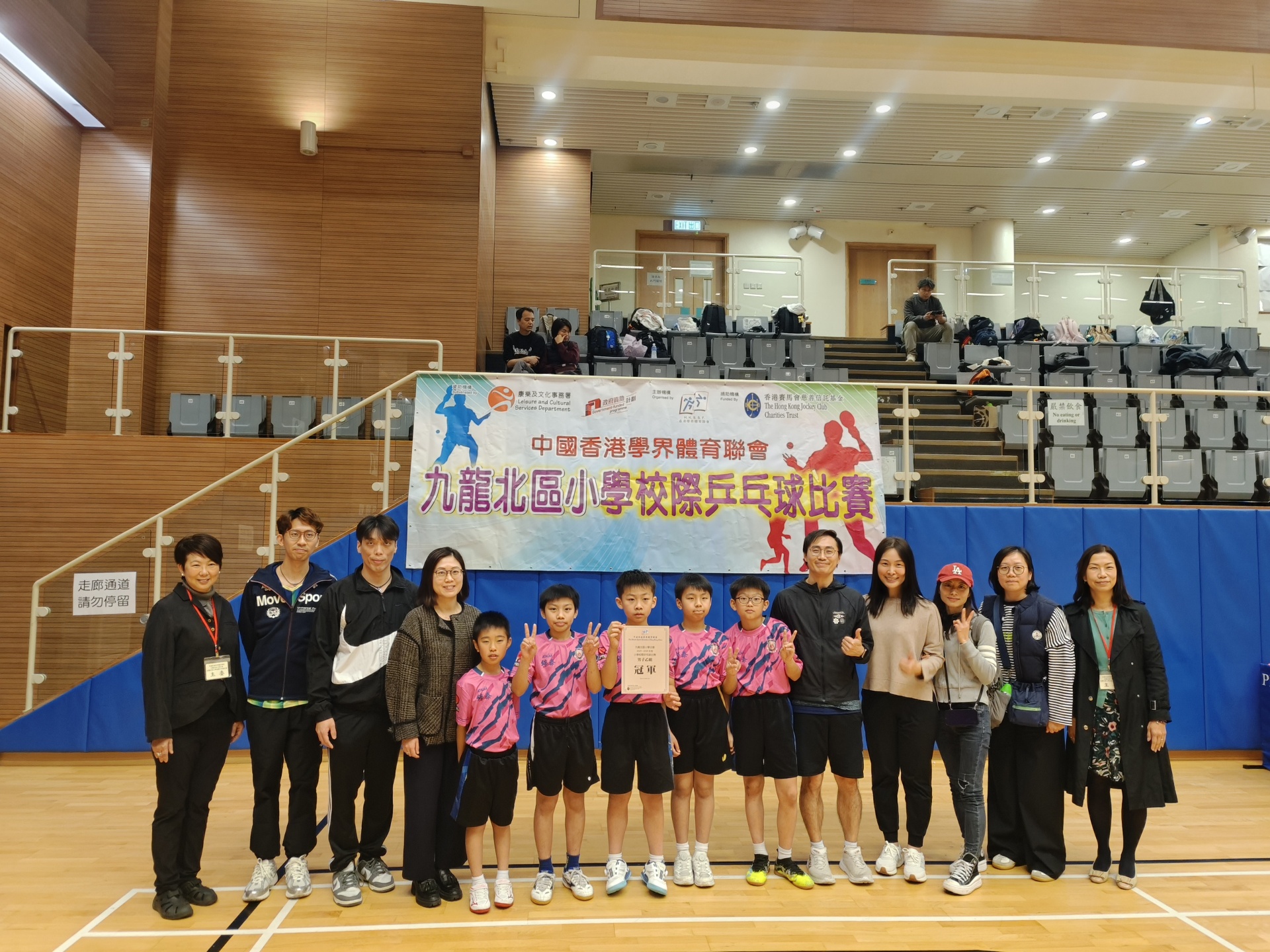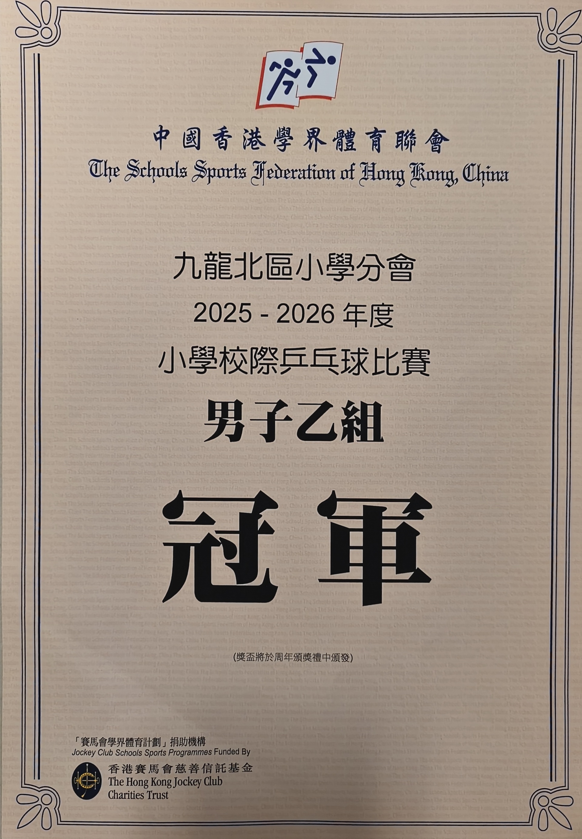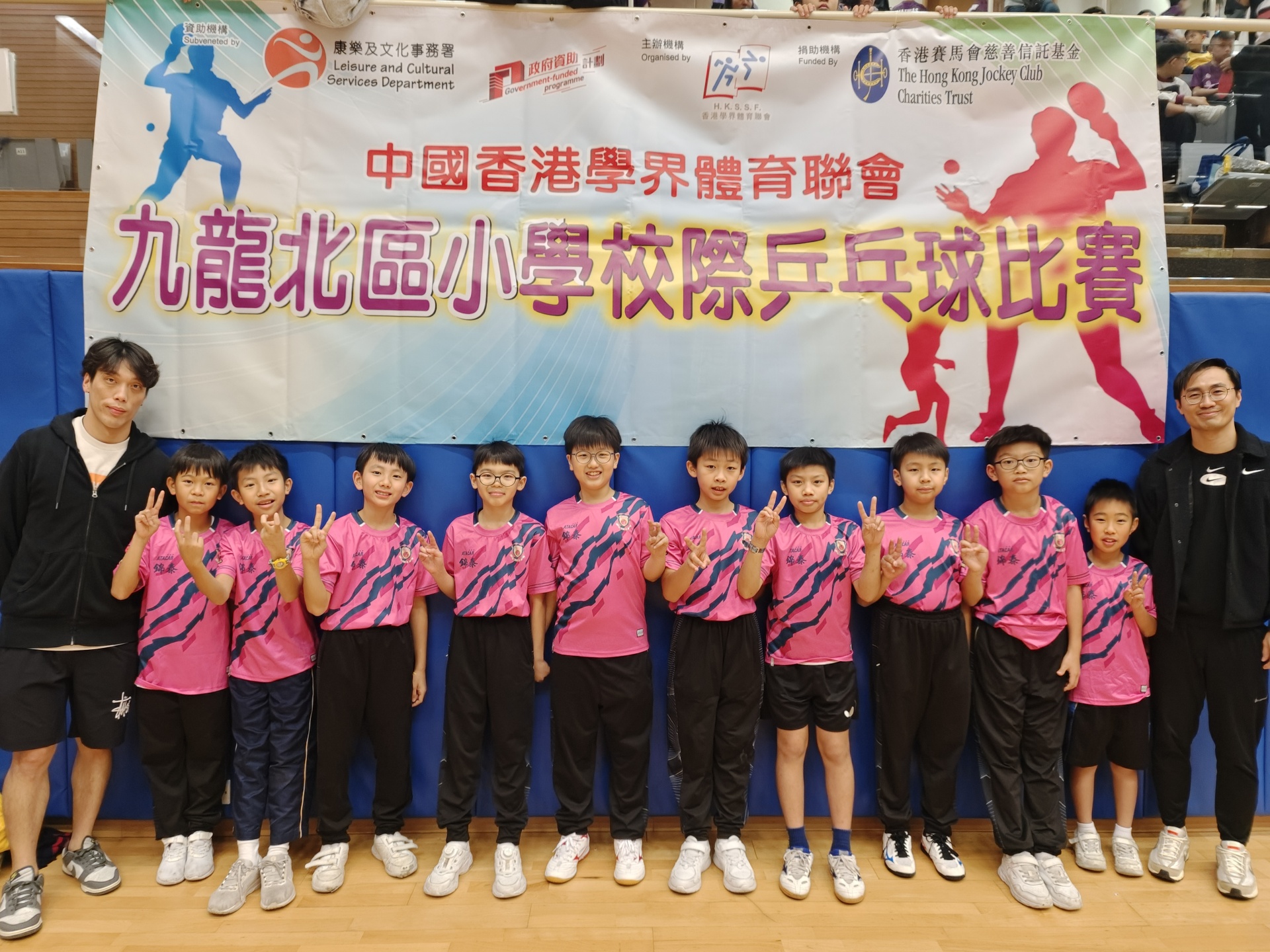 由中國香港學界體育聯會主辦的「2025-2026九龍北區小學校際乒乓球比賽」已順利舉行。賽事分為三個階段:初賽(1月5日)、晉級賽(1月7日)及決賽(1月19日),在蒲崗村道體育館展開激戰。我校派出男子甲組、女子甲組、男子乙組及女子乙組四支精銳隊伍參賽,展現了昂揚的鬥志與團隊風采。