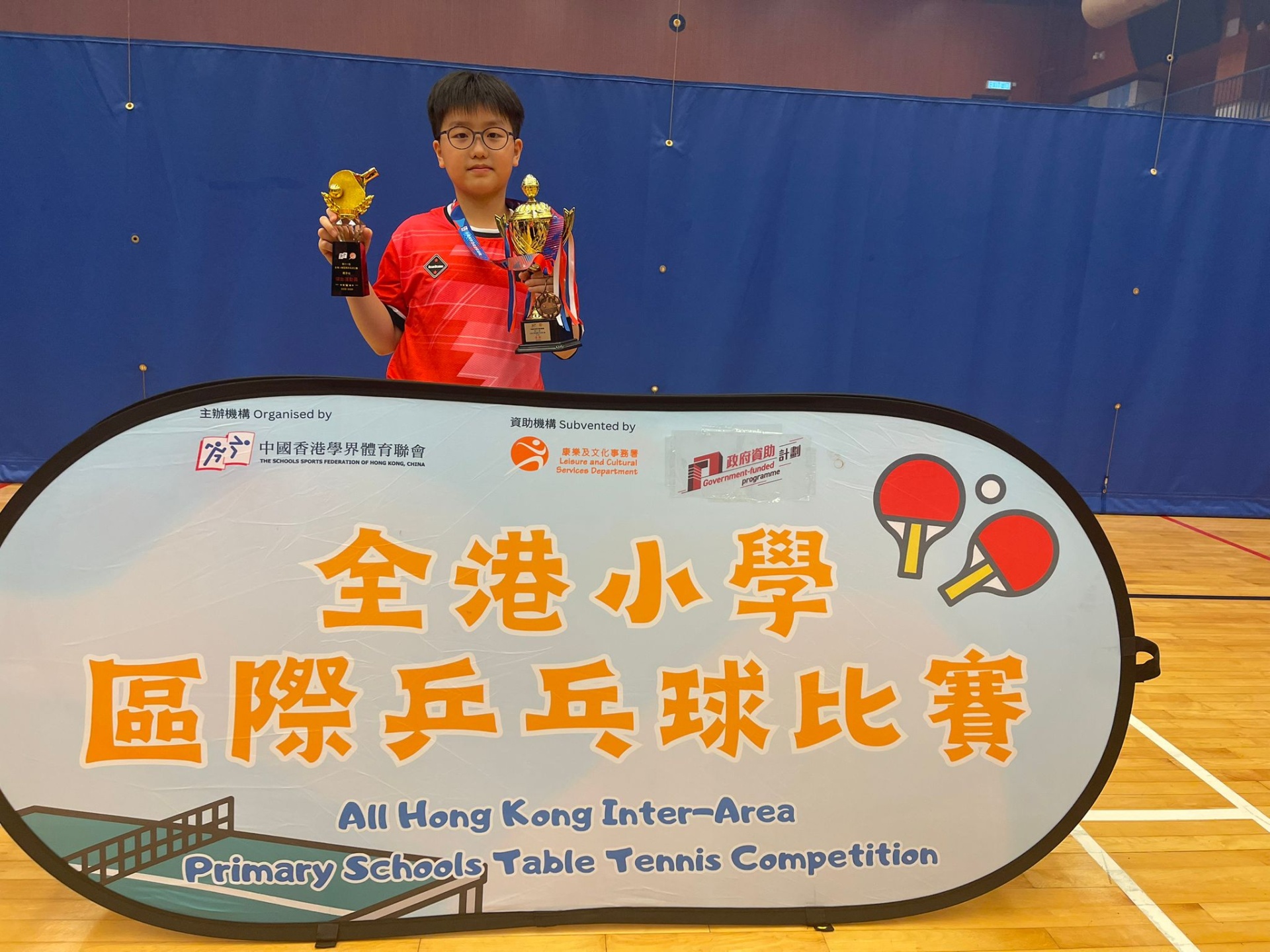 在日前舉行的「第十一屆全港小學區際乒乓球比賽」中,我校 李允捷 同學憑藉穩健的心理素質與精湛的球技,在全港高手雲集的激戰中脫穎而出,李允捷同學代表九龍北區一舉奪得男子組季軍以及傑出運動員獎。