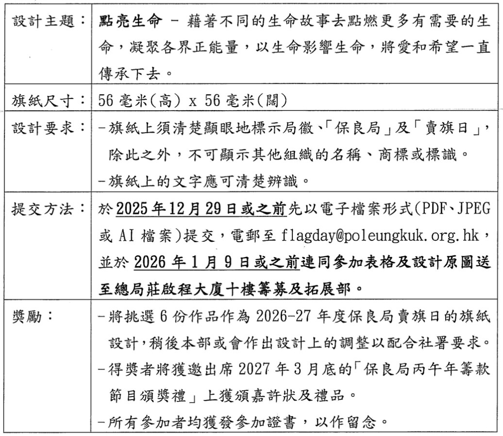 2026-27年度賣旗日將於明年2026年暑假期間舉行,其旗紙設計按社會福利署要求需於2月底提交審批。