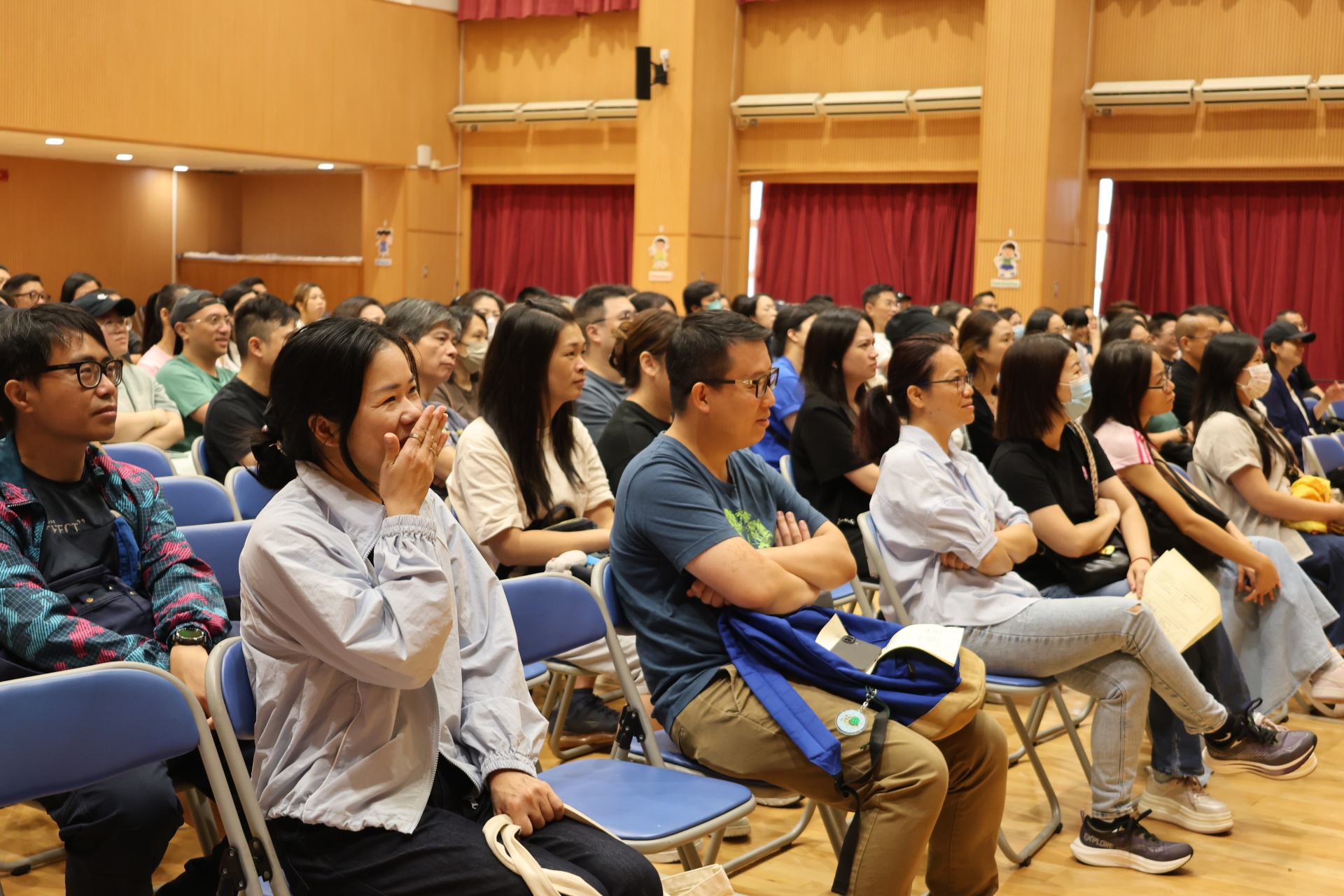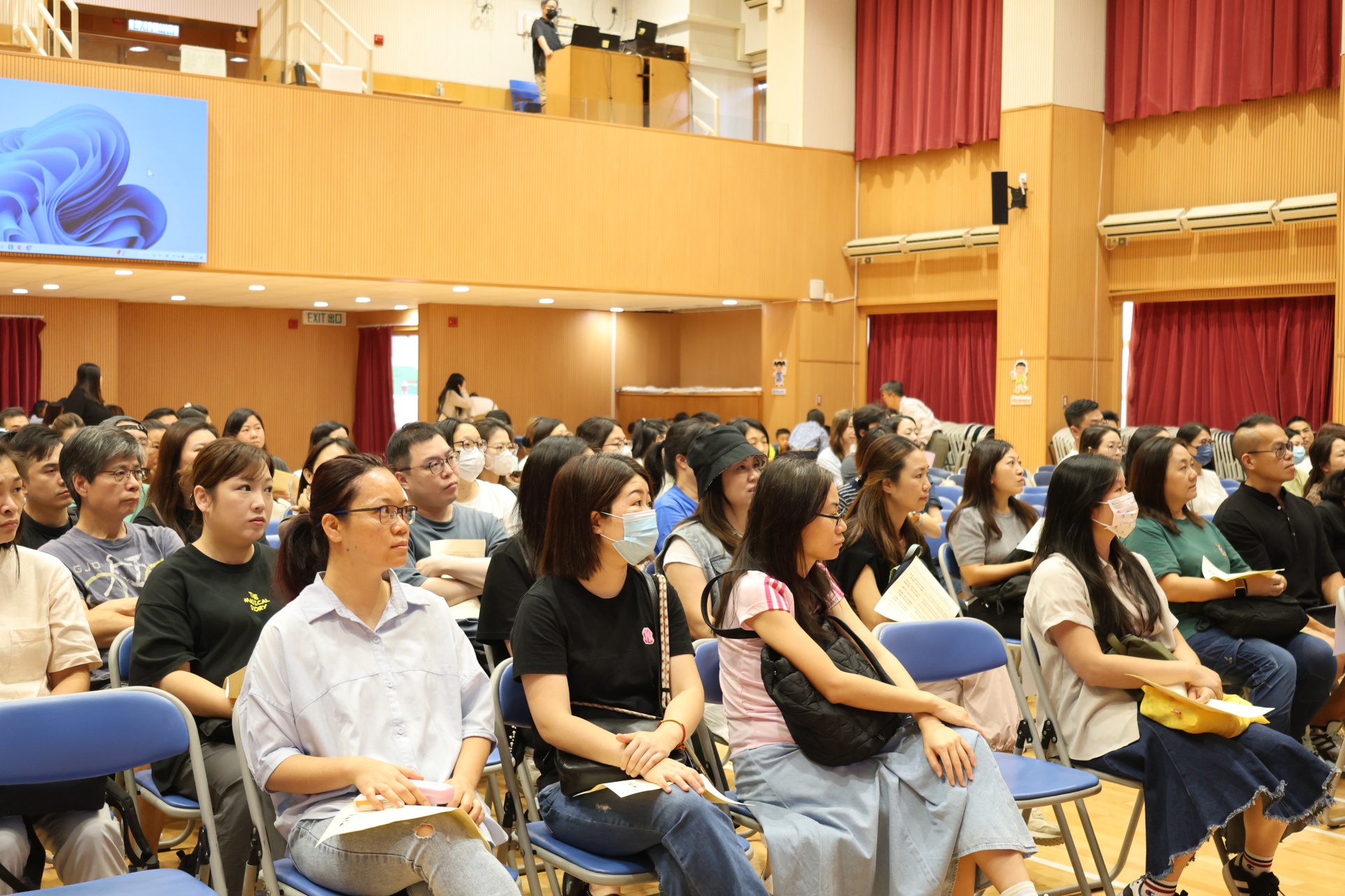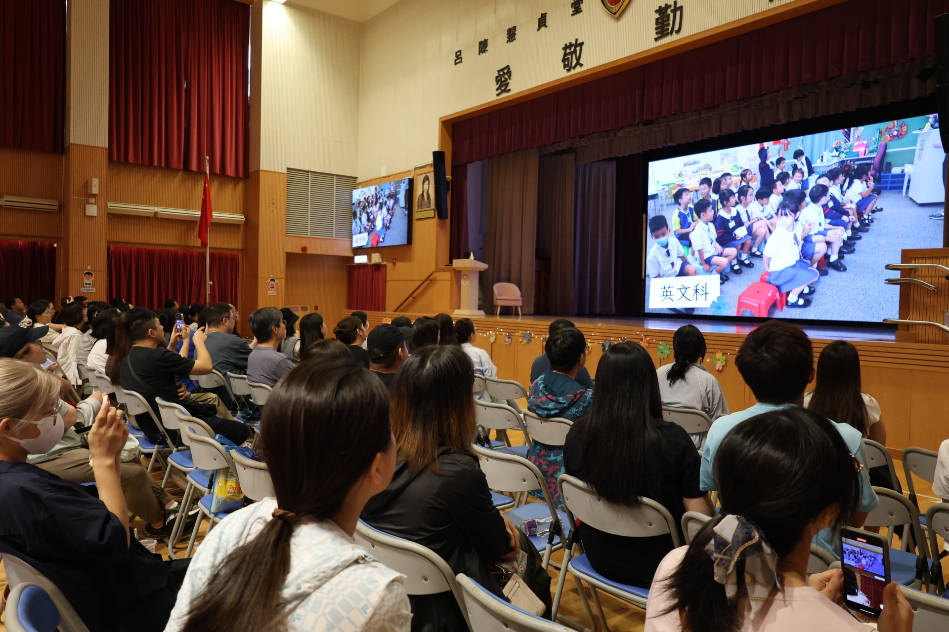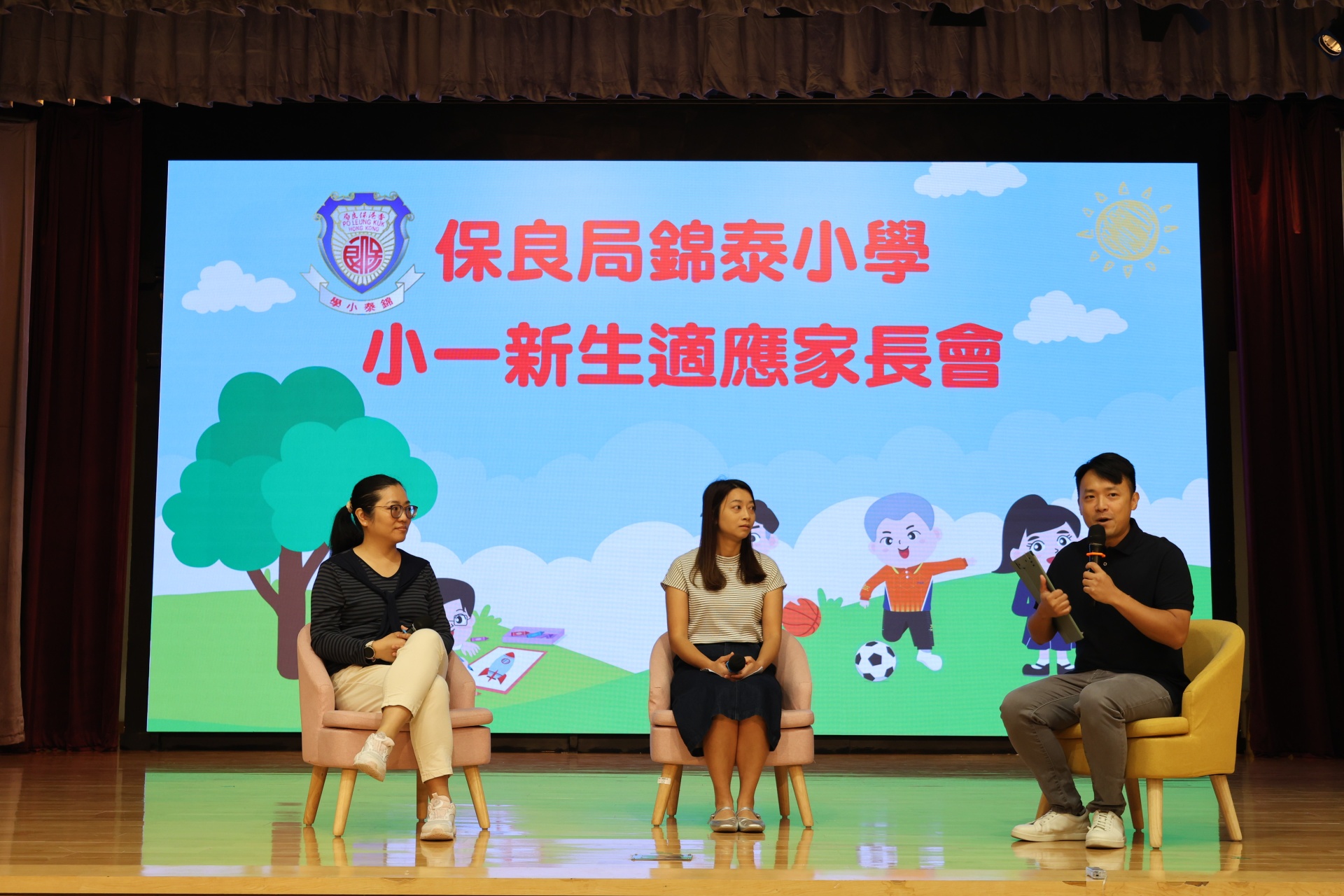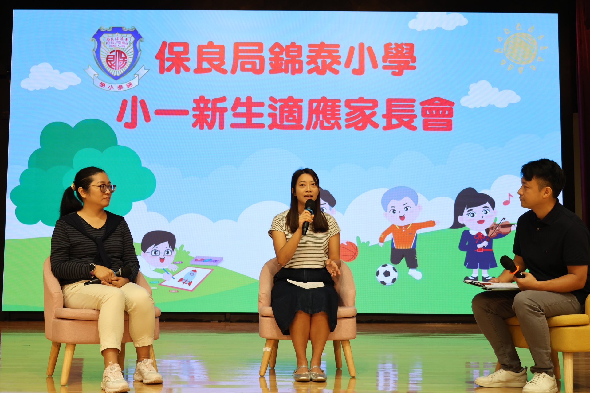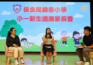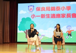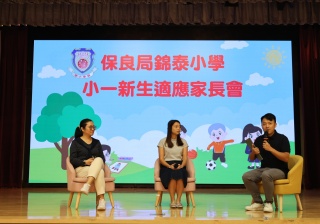 接著,社工林俊賢先生與兩位高年級學生家長進行訪談,分享了一些寶貴的育兒心得和建議,包括如何引導孩子適應學習生活、建立良好的習慣、陪伴他們成長等。隨後,一同觀賞了本屆小一新生在校園的生活片段,讓在場的家長們了解到孩子在校的學習生活。