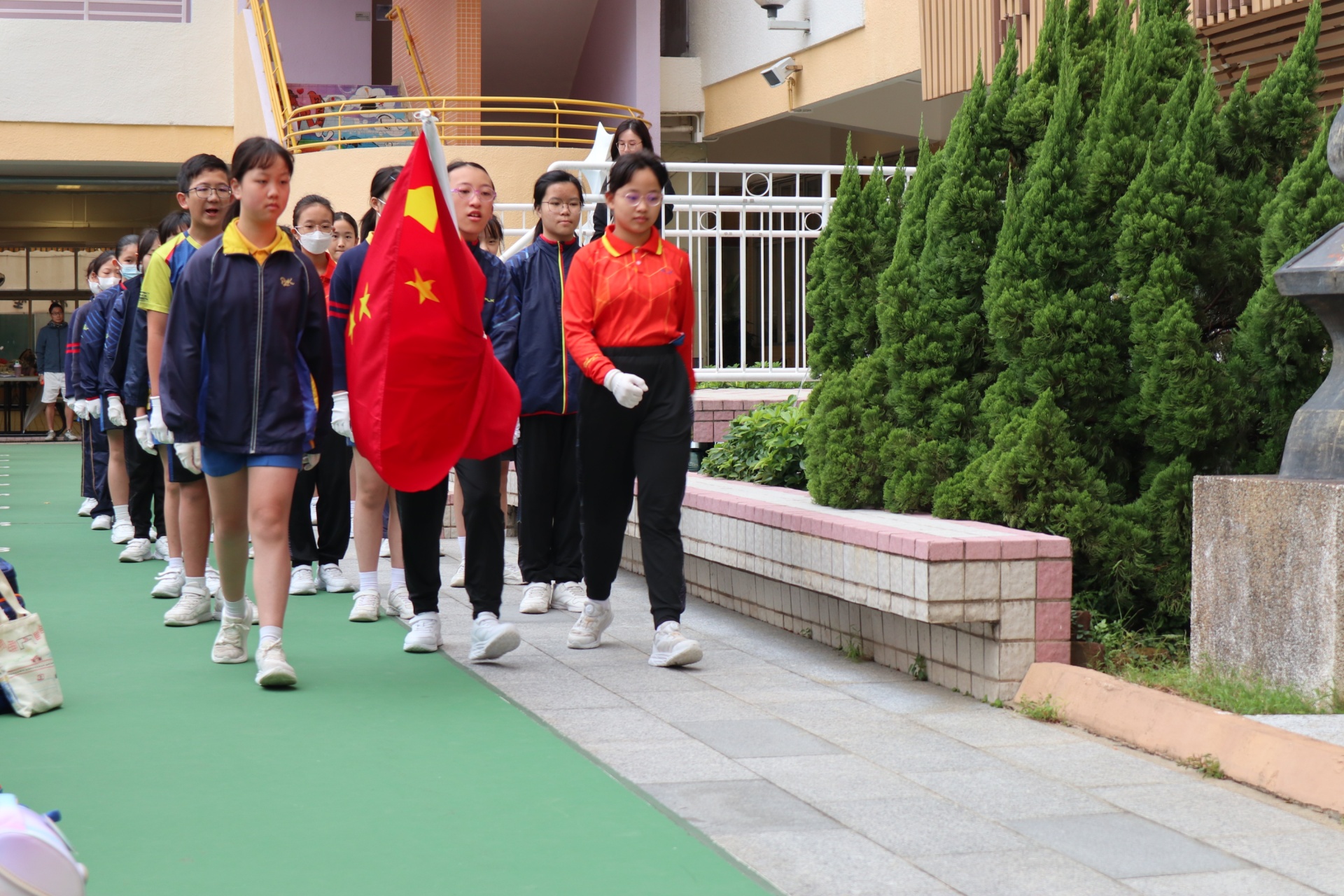 本校為了嚮應第十五屆全運會,已經在地下講台後面設置了一個壁報,內容包括香港賽區的場地,以及比賽項目。班主任今天會派發一張「第十五屆全運會圖案競猜遊戲紙」,讓全校學生一齊猜猜那九個圖案是代表哪一種全運會的運動項目。如果猜中全部9個圖案的同學,可以獲得神秘小禮物。同學只要在小息時將遊戲紙放入「基本法大使」手持的收集箱內,便可以參與這個競猜遊戲了!