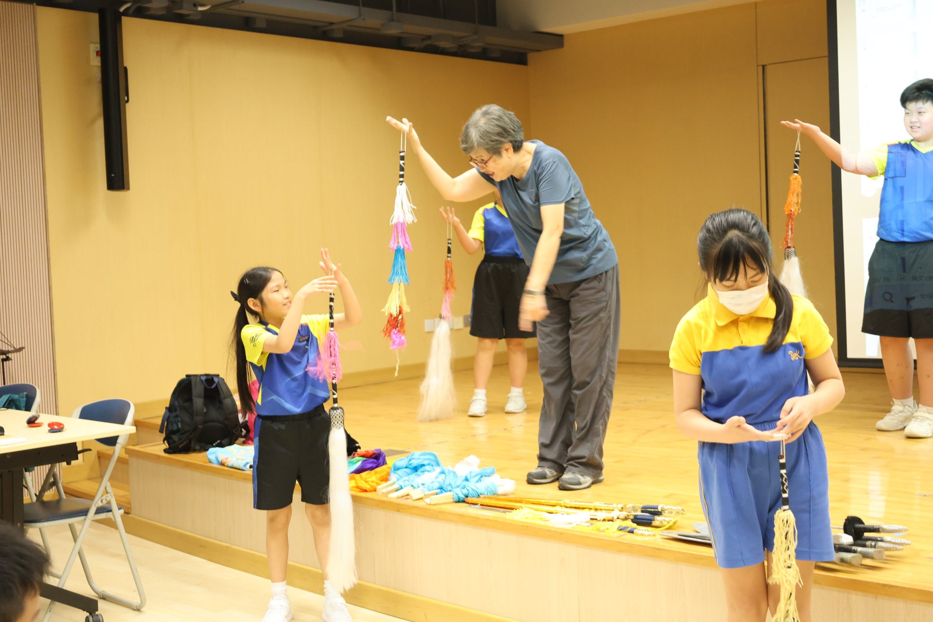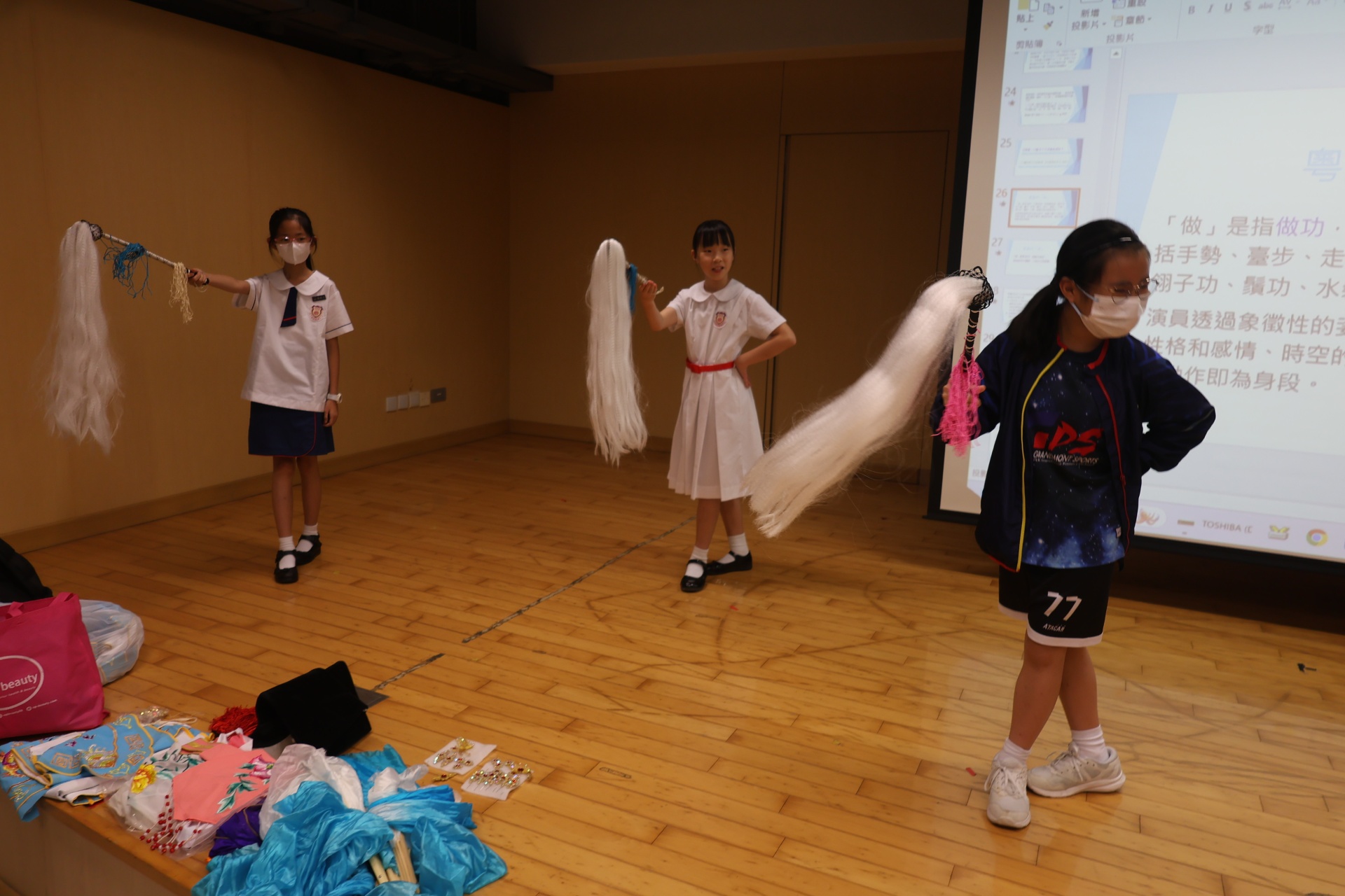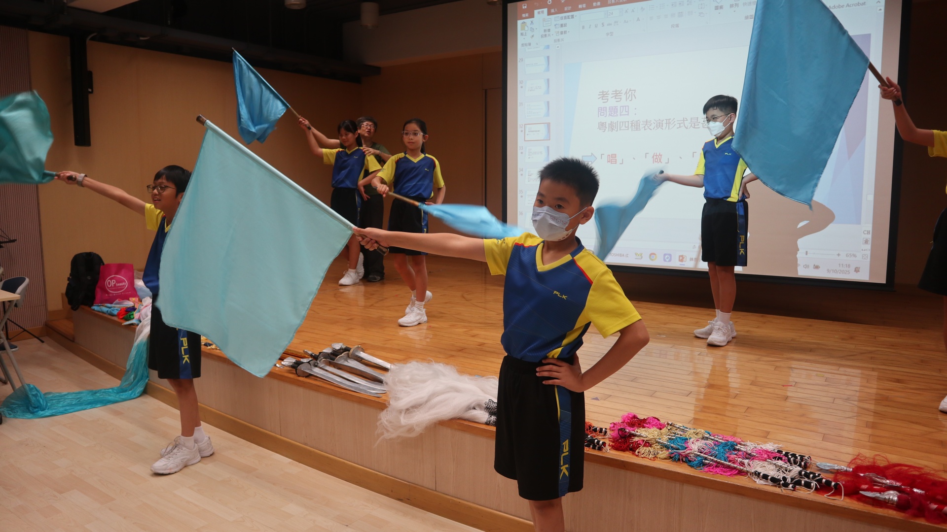 粵劇是以粵語演唱和念白的戲曲。課程中學生可以學習到通過唱、做、唸、打的藝術手段,並會配合化妝、服飾、道具和鑼鼓等演繹故事情節,其表現形式糅合了文學、戲劇、曲藝、舞蹈及武打,它的唱腔、行當、化妝、身段及曲譜等都蘊含豐富的藝術價值。讓我們一起回顧五年級學生上粵劇體驗課時的課堂剪影吧!