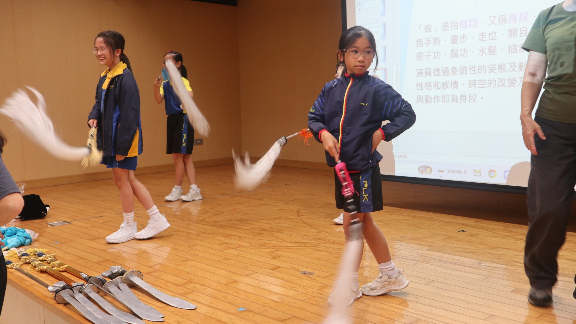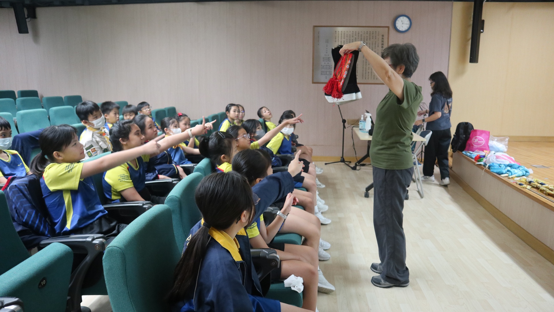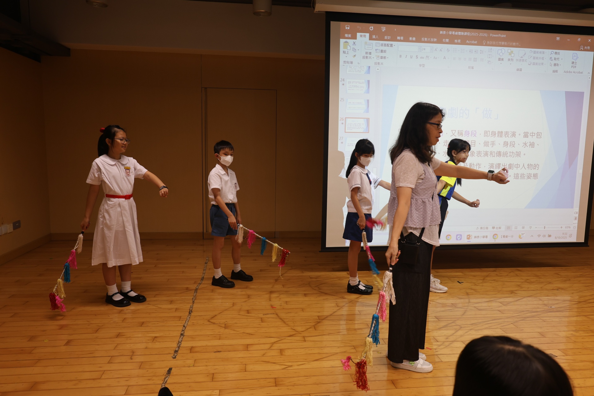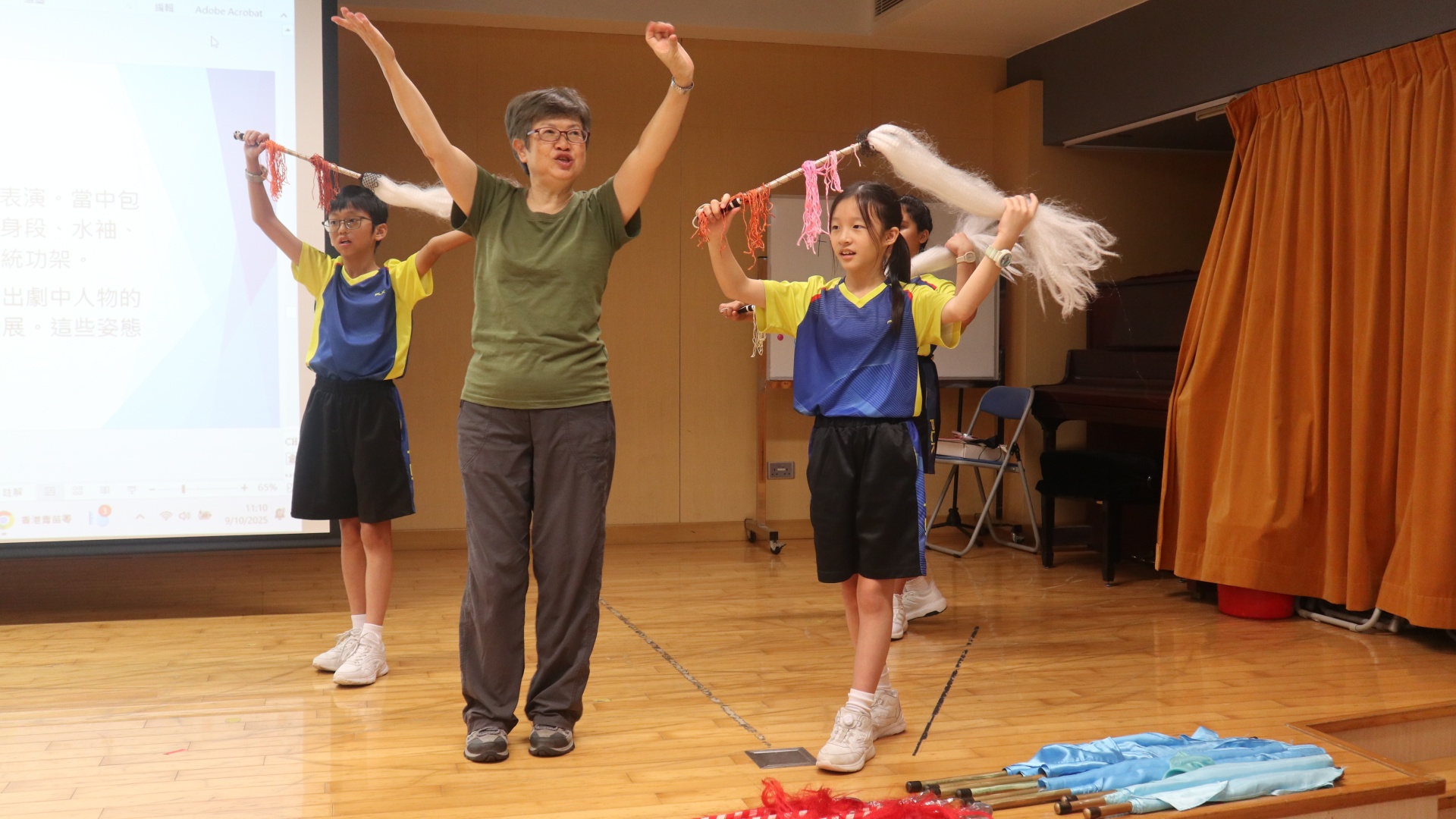 粵劇是以粵語演唱和念白的戲曲。課程中學生可以學習到通過唱、做、唸、打的藝術手段,並會配合化妝、服飾、道具和鑼鼓等演繹故事情節,其表現形式糅合了文學、戲劇、曲藝、舞蹈及武打,它的唱腔、行當、化妝、身段及曲譜等都蘊含豐富的藝術價值。讓我們一起回顧五年級學生上粵劇體驗課時的課堂剪影吧!