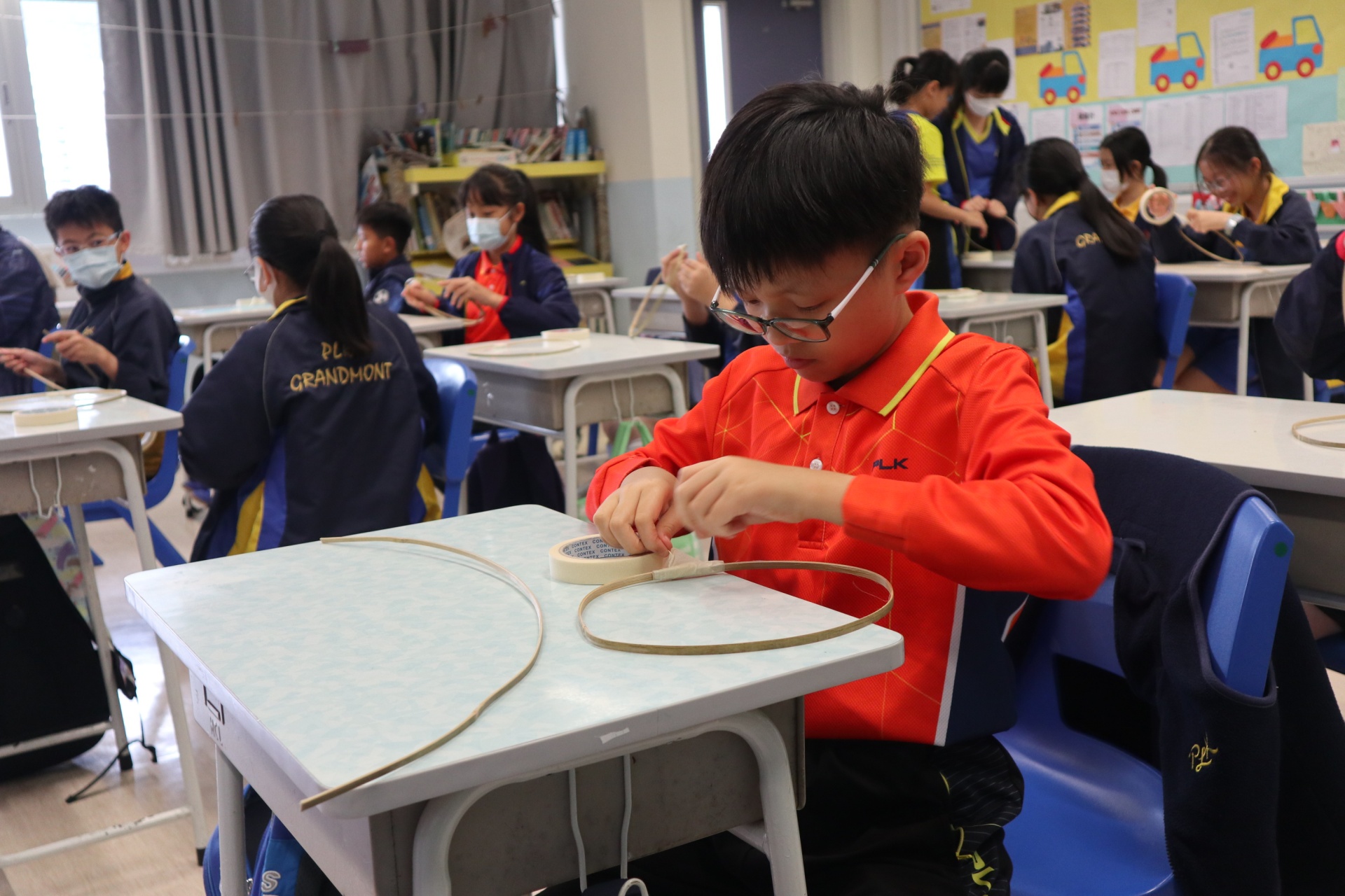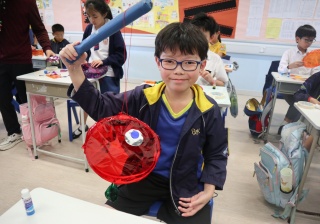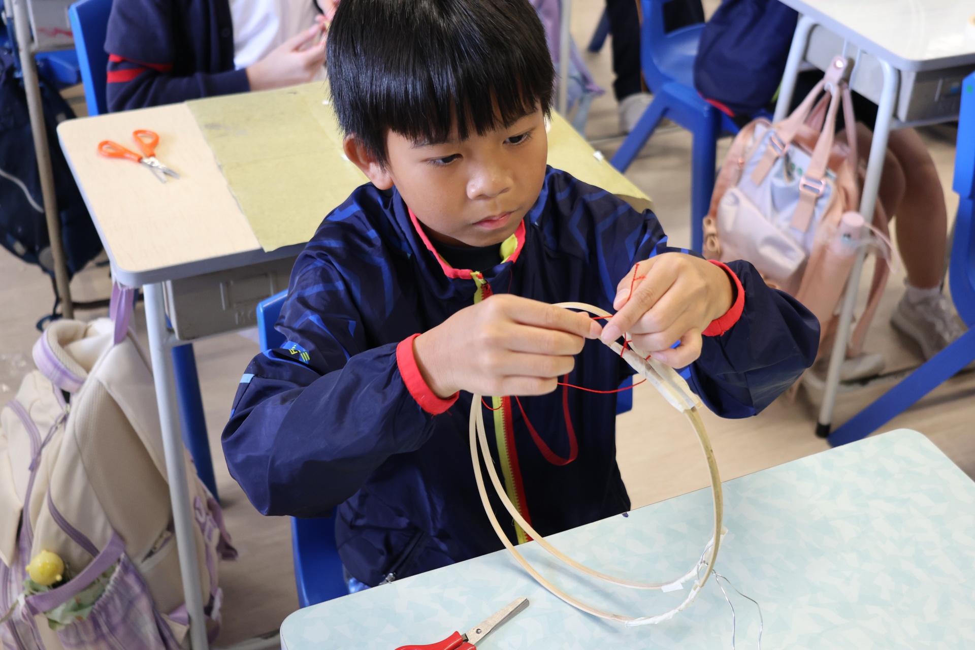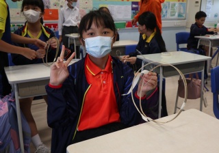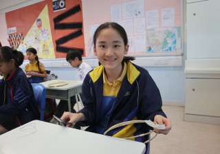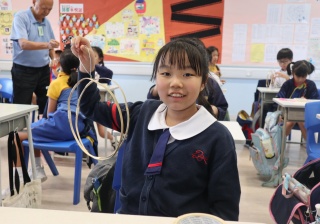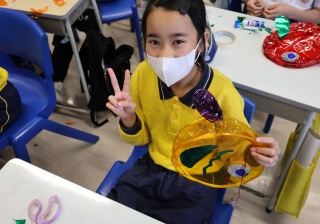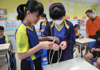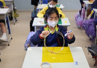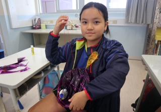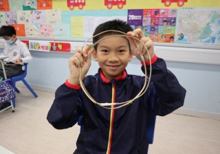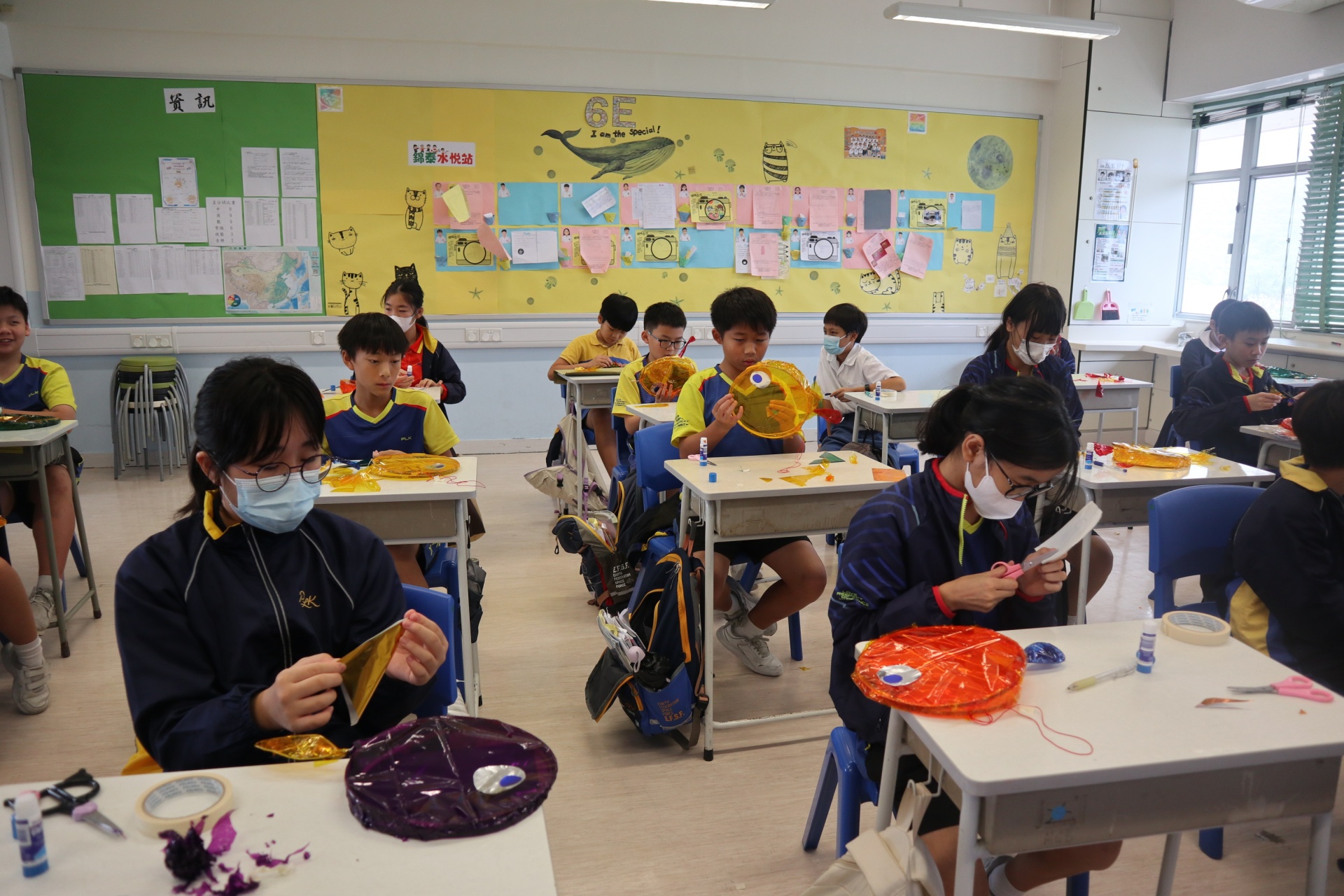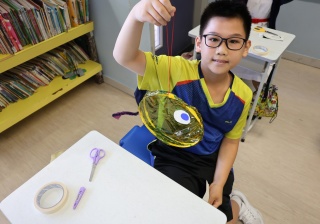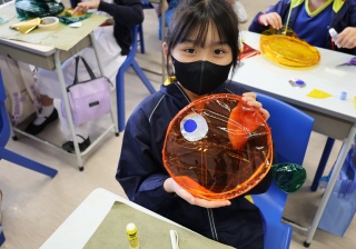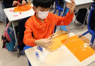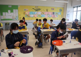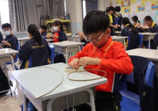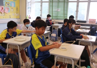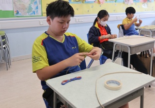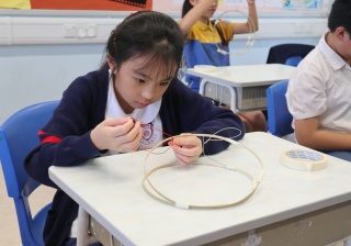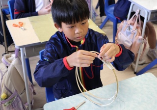 六年級學生將會於體驗課中學習紮骨、貼飾紙來創作一尾魚兒花燈。看,學生多麼投入創作呢!