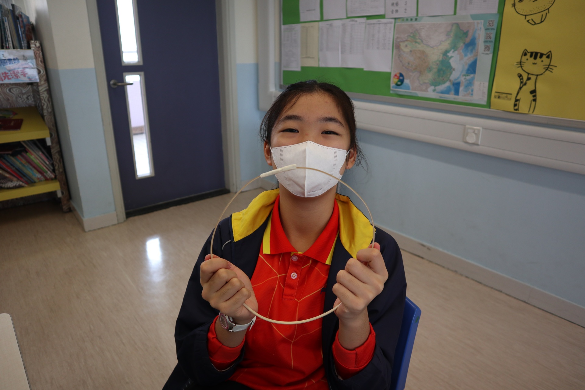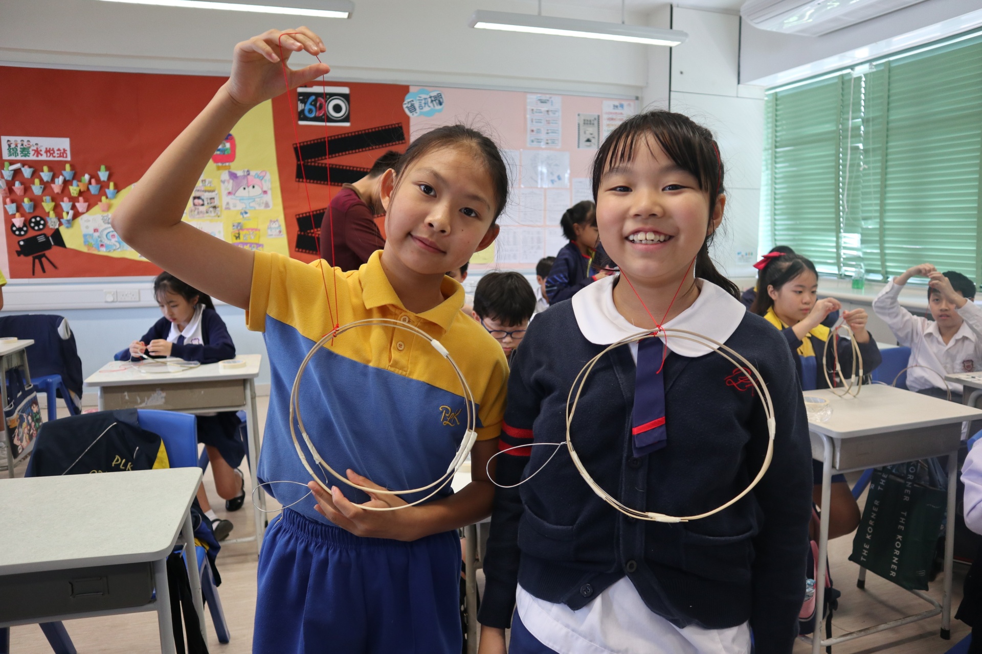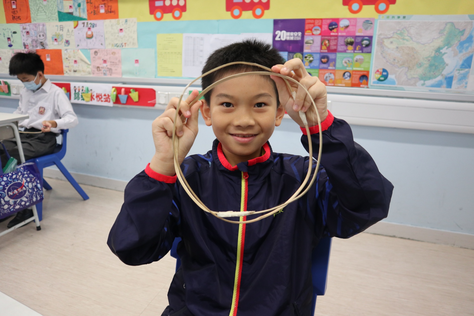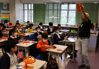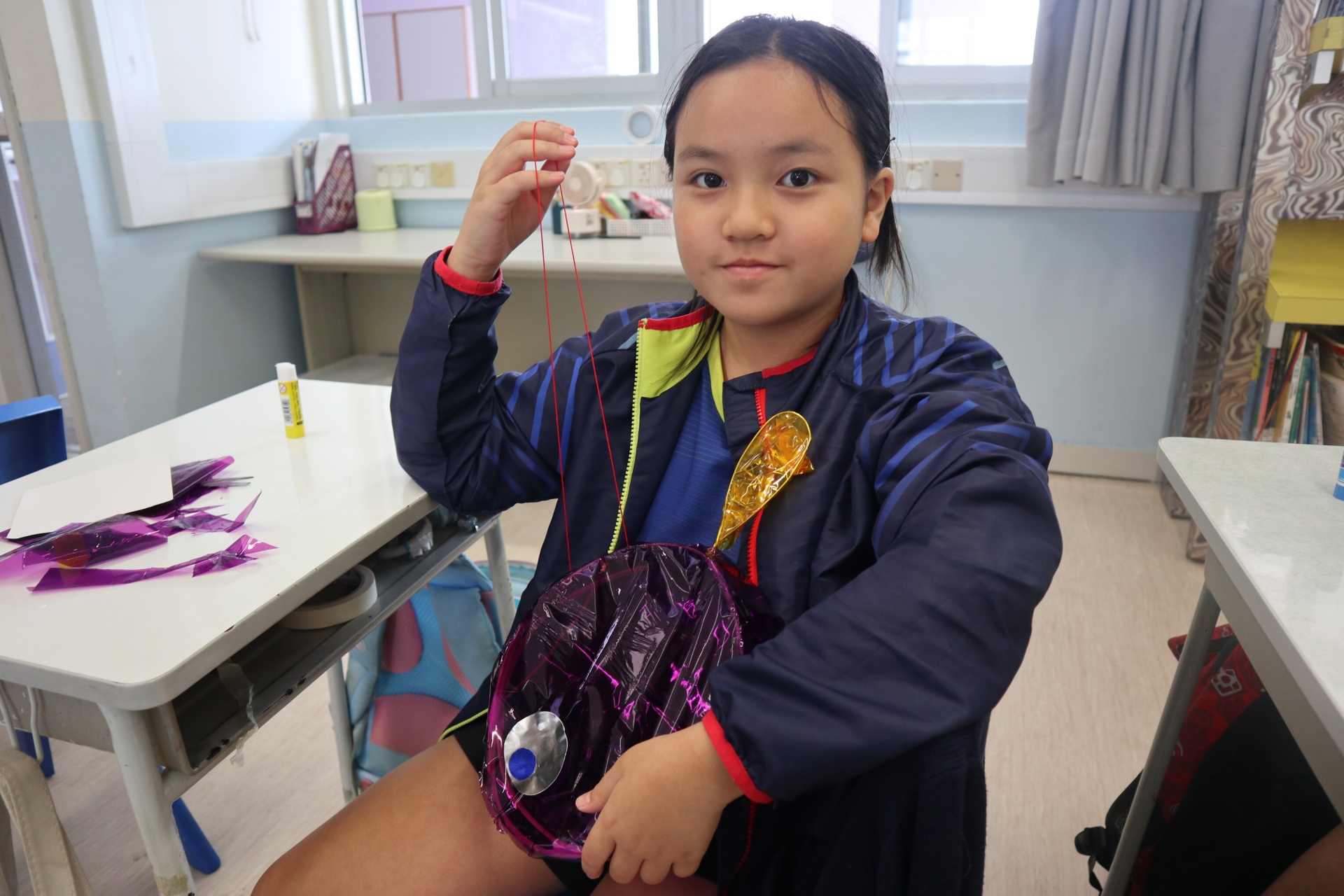 六年級學生將會於體驗課中學習紮骨、貼飾紙來創作一尾魚兒花燈。看,學生多麼投入創作呢!