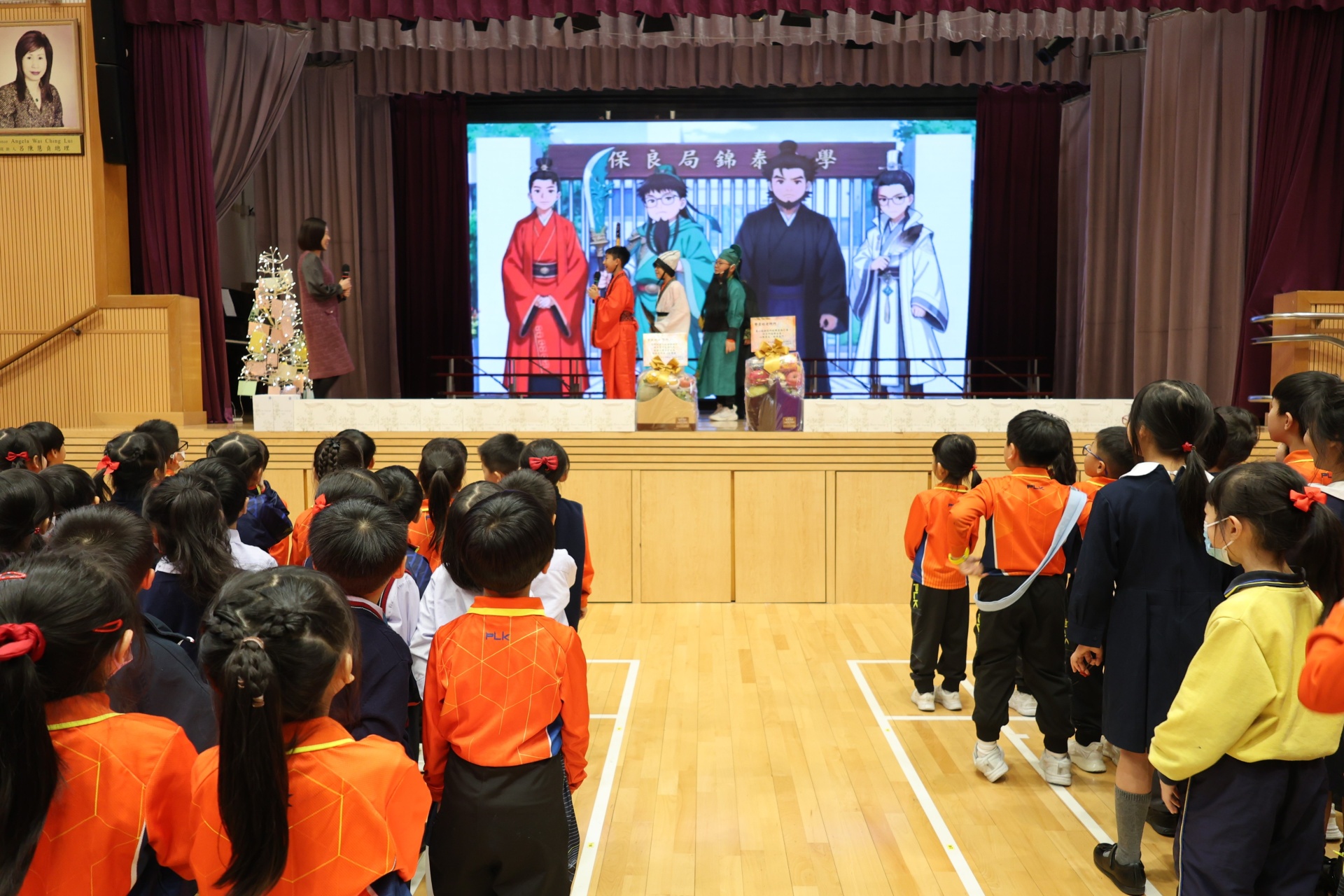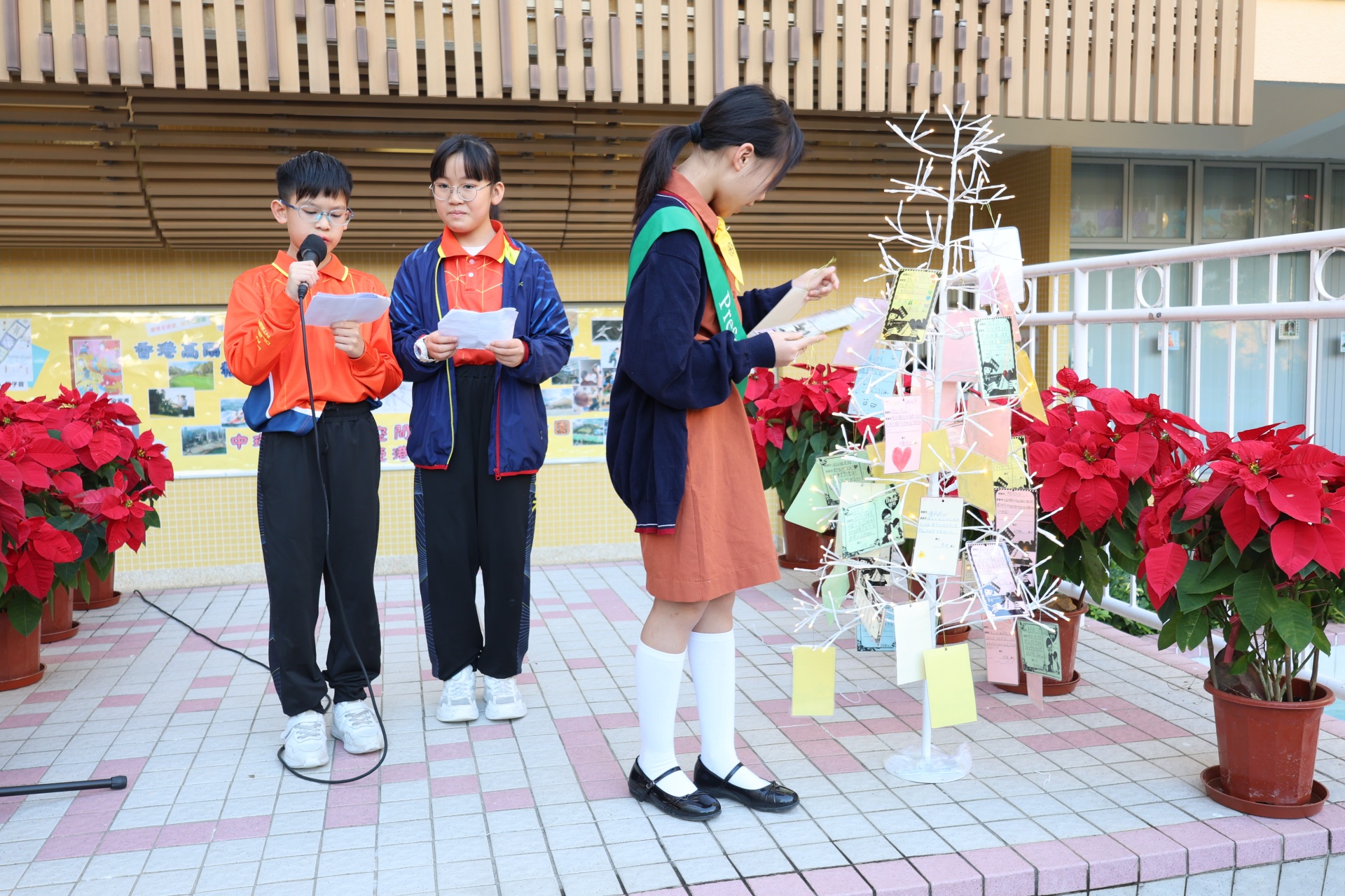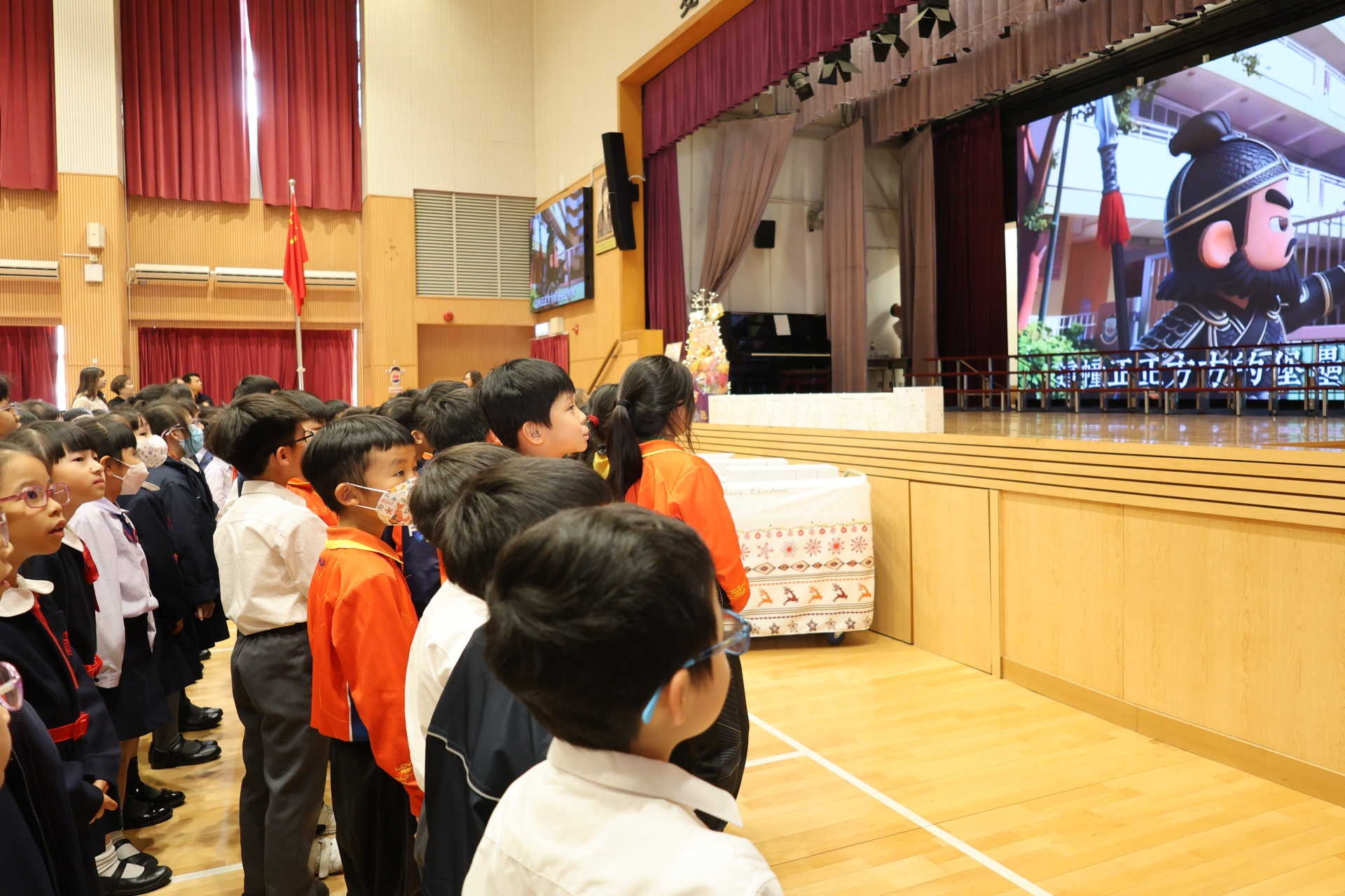 本校於2025年12月17日舉行了「敬師周會」。敬師周會的活動十分豐富精彩,包括吳嘉慧校長的分享、同學們以「三國演義」的戲劇演繹、合唱團帶領全校同學唱《聽我説謝謝你》,以及家長和同學們向老師致送敬師禮物及佈置「敬師樹」等,讓大家向老師們致以衷心的感謝和祝福,場面洋溢着溫馨歡樂的氣氛。