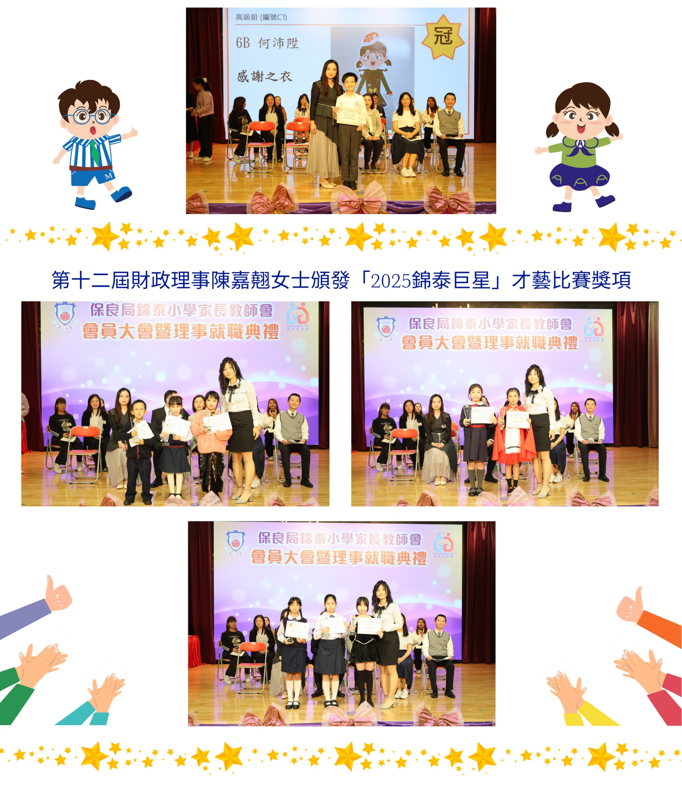 頒獎後,大家一同欣賞「錦泰正能量吉祥人物聖誕新裝設計比賽」得獎作品及「錦泰巨星」才藝比賽優勝者的精彩演出,場面熱鬧,氣氛融洽。讓我們一起來回顧當天典禮的花絮吧!