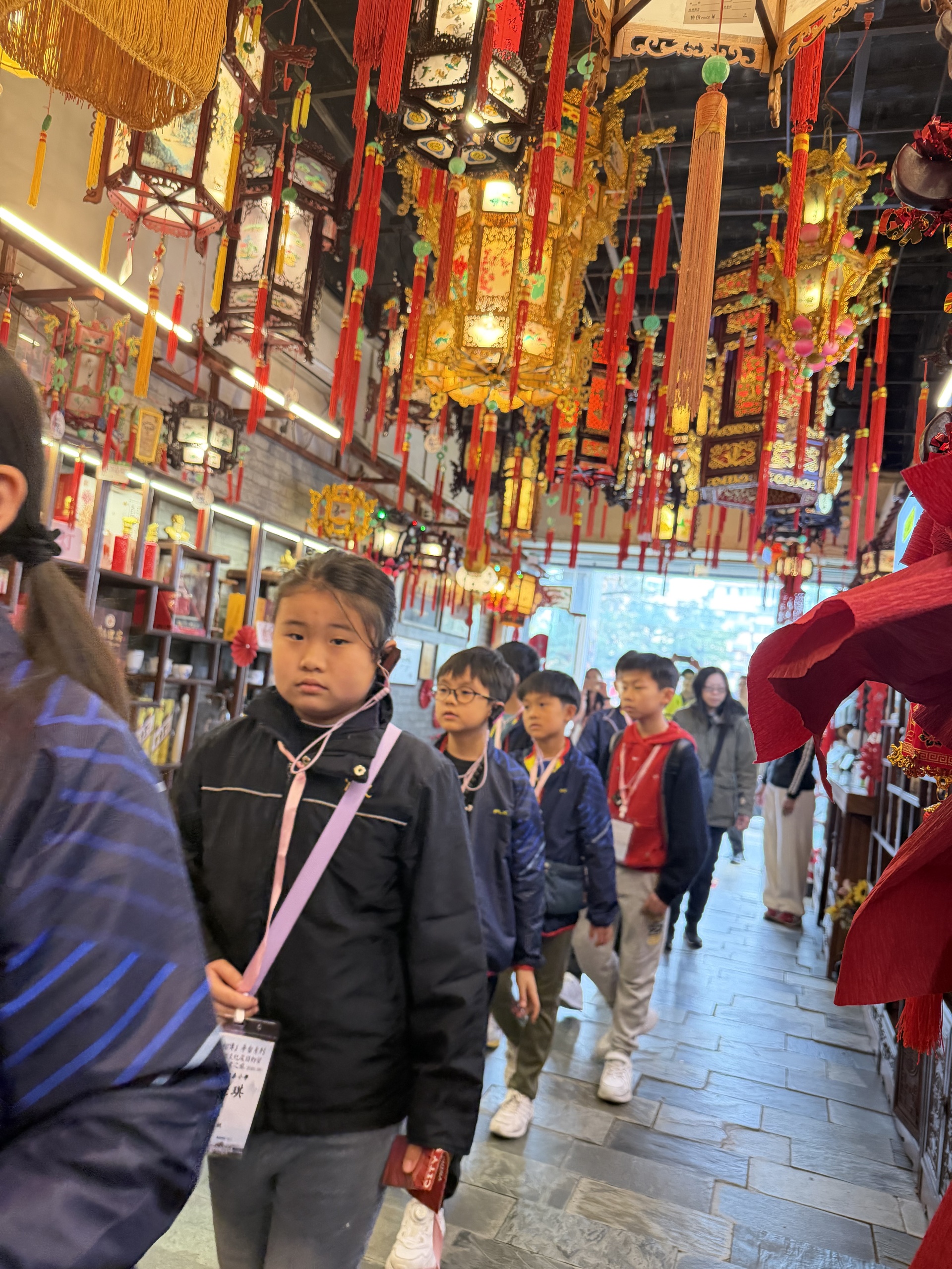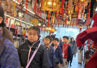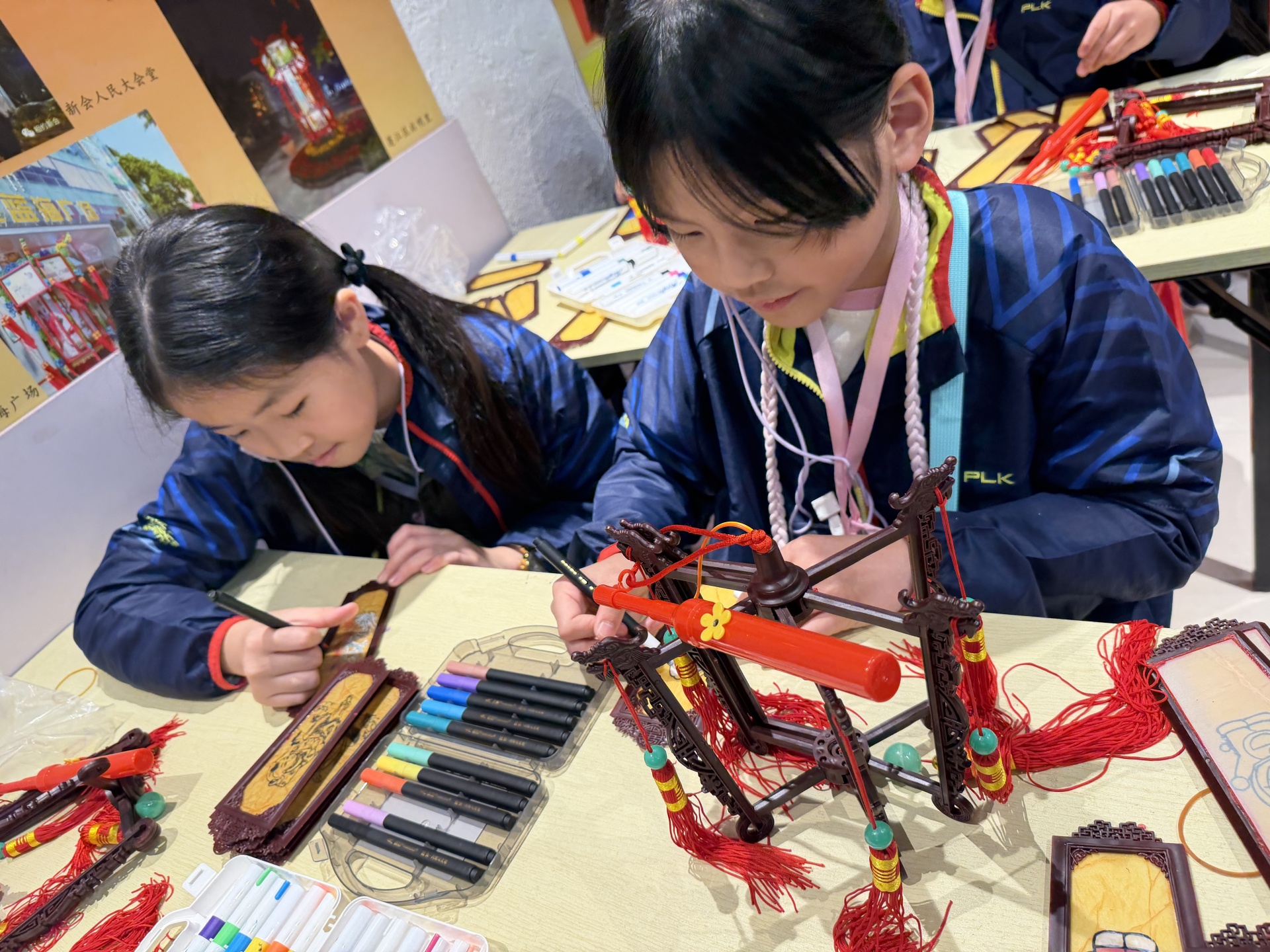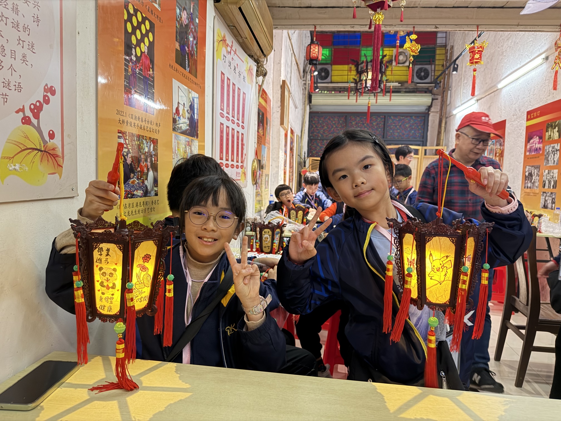 下午,我們來到擁有百年歷史的華僑村落——啟明里。這裏記載了江門往昔的輝煌,如今被活化成休閒街區。在這裏,同學們驚嘆,原來香港不少藝人的家鄉都是江門,比如周潤發、劉德華等。接下來,同學們參與江門另一項非物質文化遺產項目——東藝宮燈製作,傳承人李仰東先生親自跟同學們講解江門東藝宮燈的歷史及製作技巧。瞧,同學們都非常投入呢!不少同學都表示,要將做好的宮燈帶回香港,春節時好裝飾一下家。