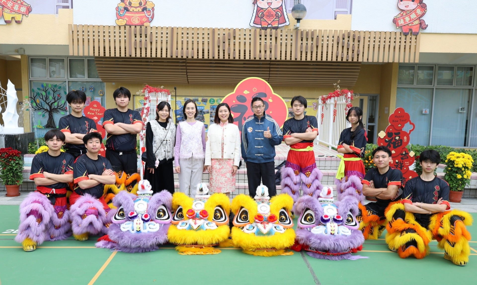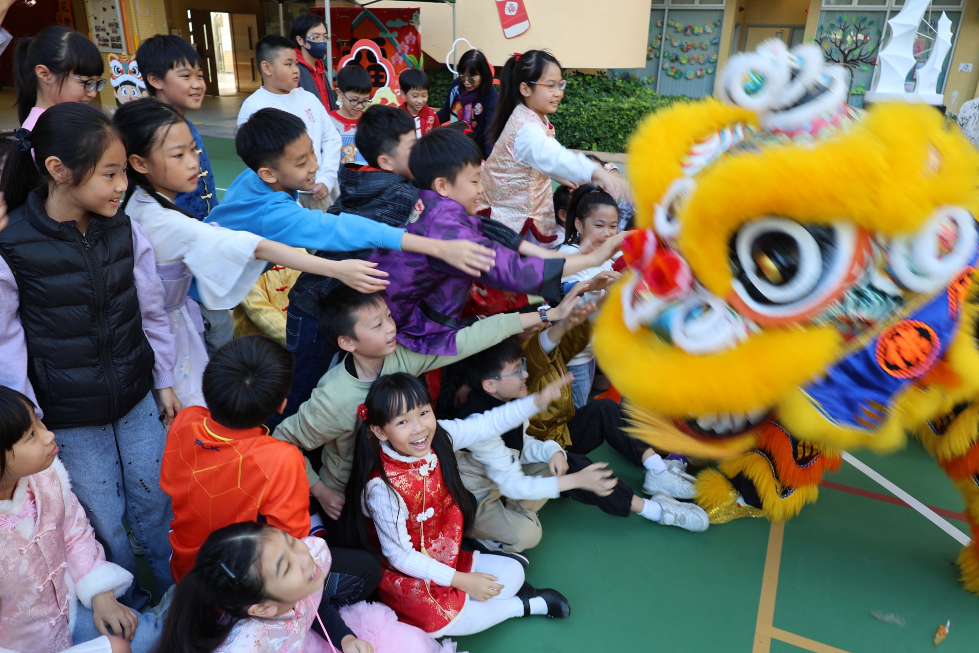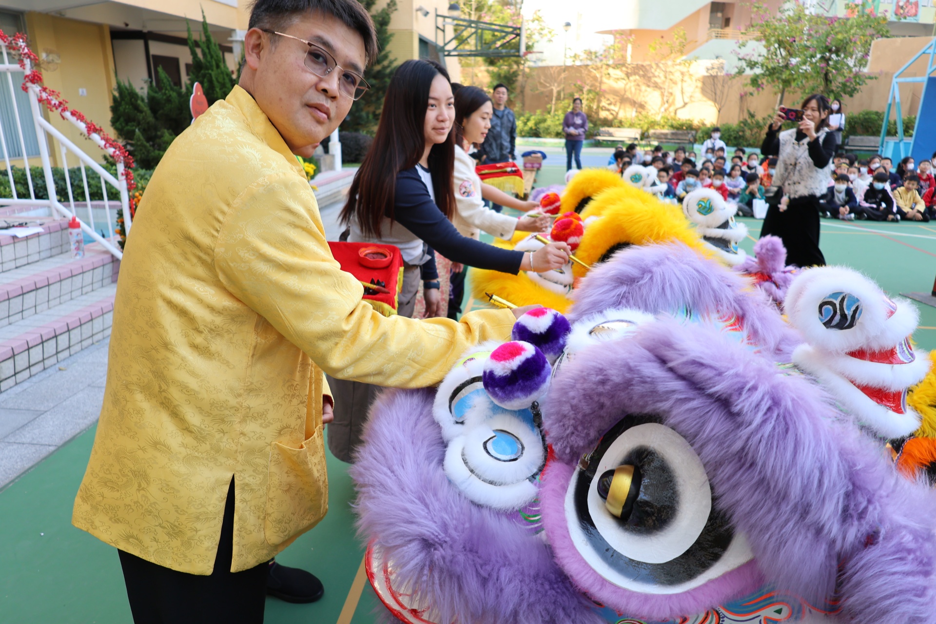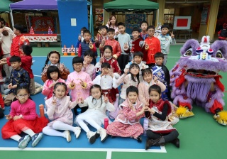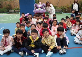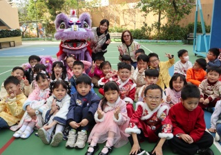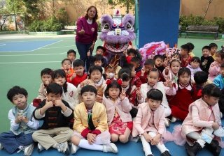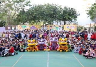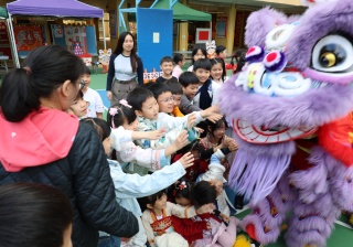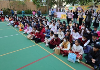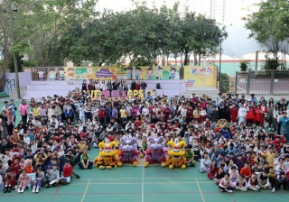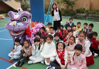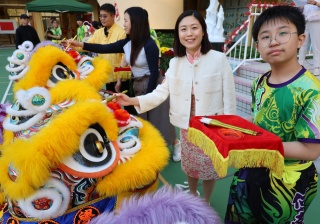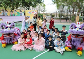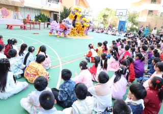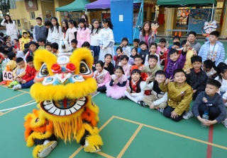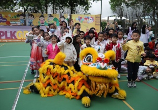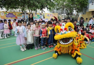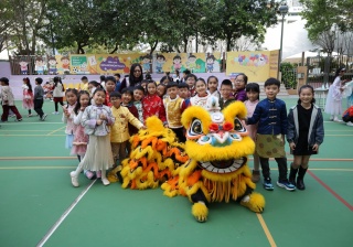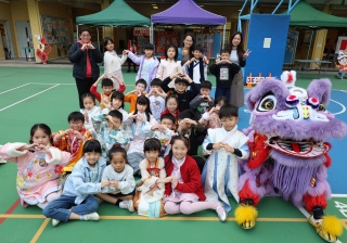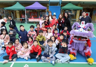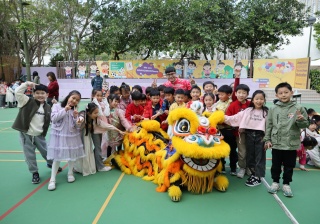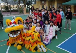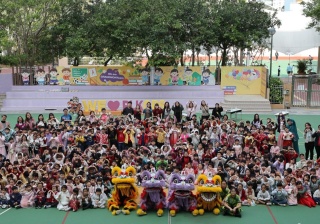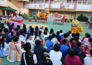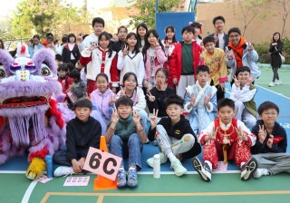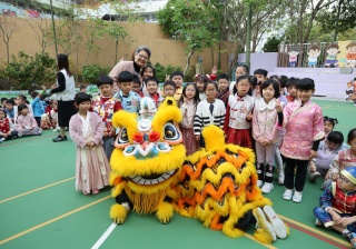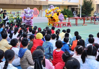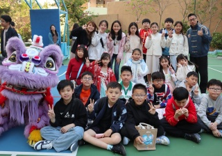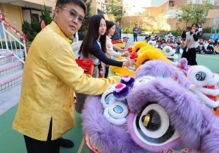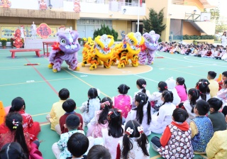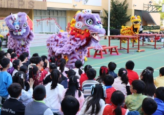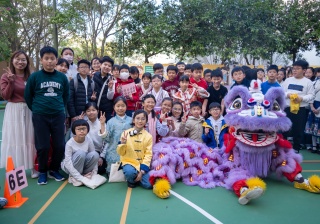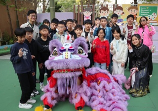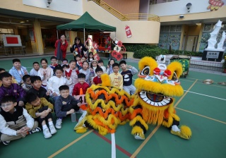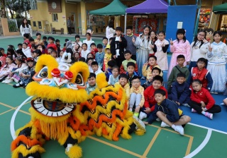 本校邀請到佛教何南金中學的舞獅隊到校表演。活動伊始,吳校長、劉副校長與家教會主席手持朱砂筆,為威風凜凜的醒獅點睛開光。醒獅活躍地在操場上翻騰跳躍。活動尾聲,舞獅隊與同學們歡樂合照,大家爭相觸摸獅頭沾取好運。