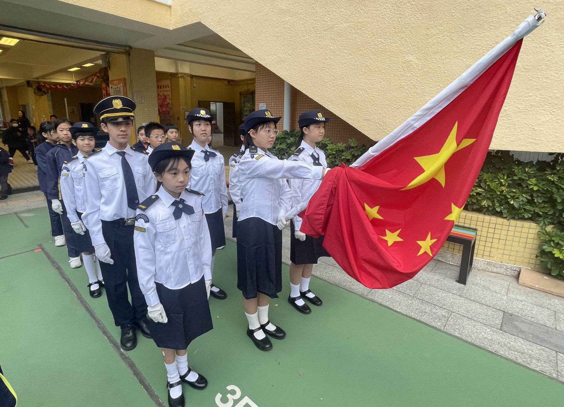 本校升旗隊成立於2003年,為香港升旗隊總會的成員(編號P 013)。本校升旗隊伍分為A、B兩隊,各由廿一位三至六年班的學生組成。升旗隊的訓練時間安排每周一次,旨在提高學生對國家的歸屬感、培養紀律和團隊合作精神。每周的上學日,升旗隊的成員都於早會上負責升旗儀式,展現對國家的熱愛與尊重。透過這些活動,學生不僅增進了對升旗儀式的理解,也在過程中培養及提升學生對祖國的歸屬感及認同感。