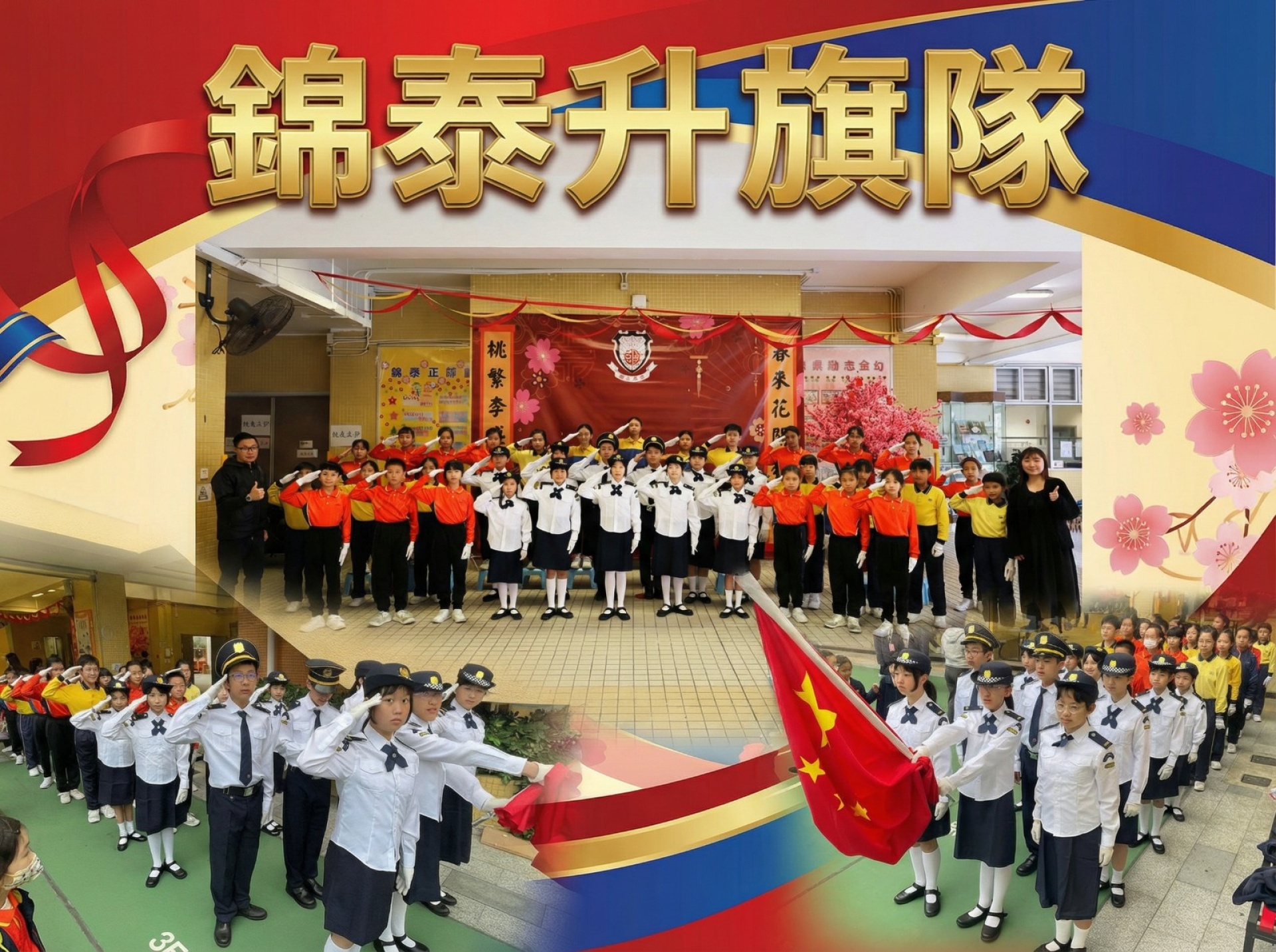本校升旗隊成立於2003年,為香港升旗隊總會的成員(編號P 013)。本校升旗隊伍分為A、B兩隊,各由廿一位三至六年班的學生組成。升旗隊的訓練時間安排每周一次,旨在提高學生對國家的歸屬感、培養紀律和團隊合作精神。每周的上學日,升旗隊的成員都於早會上負責升旗儀式,展現對國家的熱愛與尊重。透過這些活動,學生不僅增進了對升旗儀式的理解,也在過程中培養及提升學生對祖國的歸屬感及認同感。