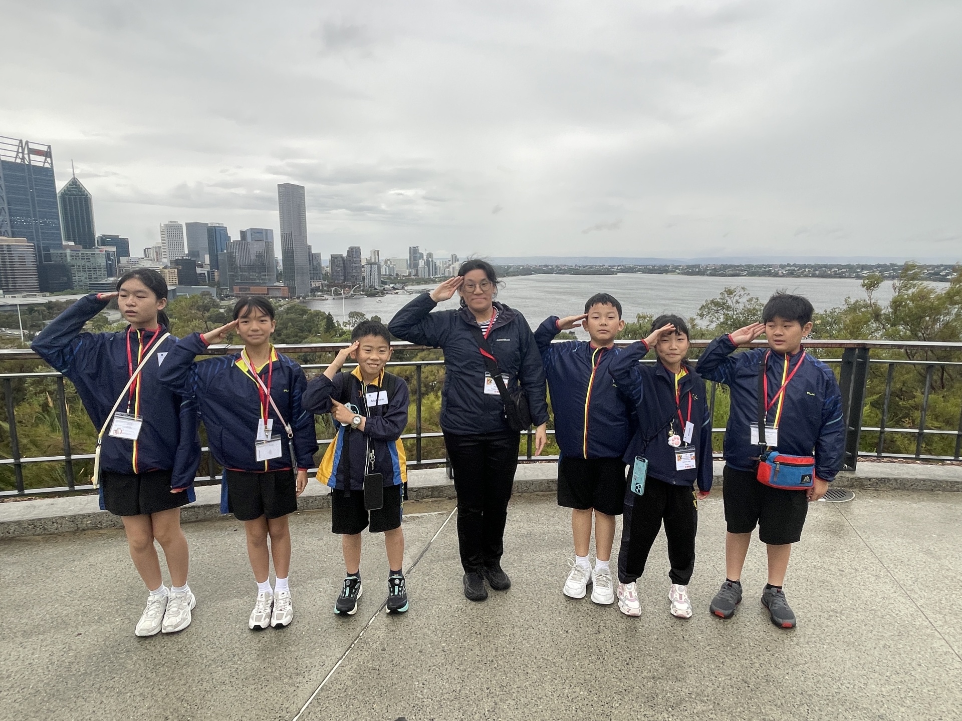 We traveled in our bus to King’s Park. King’s Park is many things. Most of all it is a beautiful memorial garden to remember those who died in wars. Our tour guide told us a lot about the different trees including one called the “Boab”. This tree is also known as the “upside down tree”. It looks like it is from another planet! The most amazing thing about King’s Park was the amazing view of the Perth skyline and city buildings. The park is high so we could overlook the city and the Swan River. We had to fight the wind and rain with our umbrellas but it eased enough for us to take some lovely group photos.